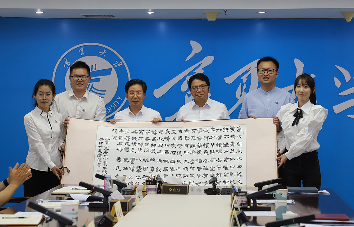 毕业生代表向学校赠送书法作品《风华正茂桃李颂》-李明花摄