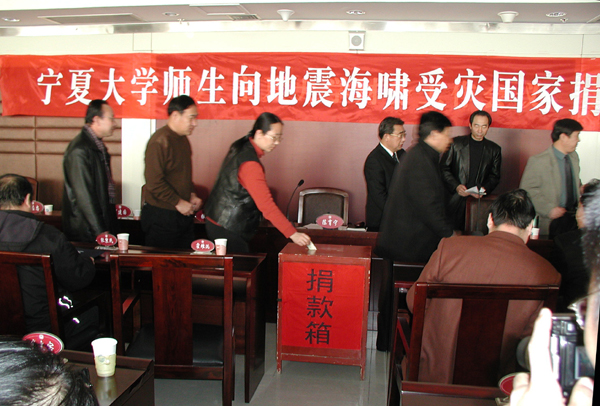 自2004年12月26日印度洋发生大地震海啸以来,国际社会和中国各界极为关注,并通过各种形式向受灾国实施援助。校党委号召广大师生员工发扬人道主义精神,向受灾国家伸出援助之手,献出一片爱心,积极捐款。bat365官网广大师生员工积极响应校党委的号召,捐款活动已于1月6日开始。