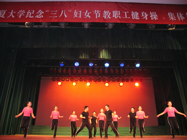 3月7日下午,为庆祝“三·八”国际劳动妇女节,活跃教职工业余文化生活,展现bat365官网女教职工风采,校工会举办了教职工健身操、集体舞比赛。全校各教学单位与职能部门共有23支队伍参加了比赛。经过紧张激烈的角逐,生命科学学院、成人教育学院分别获得集体舞比赛一、二等奖,在健身操比赛中,后勤集团、校办网管中心联队获得一等奖;“两课”教研部、政法学院获得二等奖;数学计算机学院、纪委党群审计处联队获得三等奖。比赛结束后,校党委书记、校长陈育宁,党委副书记撒承贤,纪检委书记赵维素,副校长谢应忠分别为获奖单位颁发了奖牌。
