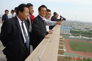 马启智主席一行先后参观了bat365官网能源化工(天然气转化)重点实验室、网管中心、图书馆、西部特色生物资源保护与利用(生物技术)重点实验室,并登上主楼楼顶鸟瞰学校全景,听取了学校校园总体规划情况的汇报。