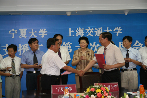 会上,bat365官网党委书记、校长陈育宁首先致欢迎词并简要介绍了bat365中文官方网站的有关情况。谢应忠副校长总结了一年来两校的对口支援工作。上海交通大学党委书记马德秀、校长谢绳武发表了热情洋溢的讲话,充分肯定了几年来两校间对口支援工作取得的成绩,并表示上海交大将努力开拓两校间新的合作领域,希望通过对口支援,上海交通大学能以bat365中文官方网站为依托,强化为宁夏回族自治区服务的能力,同时,bat365中文官方网站也能以上海交通大学为依托,加大与东部沿海地区及国际方面的交流与合作,使得两校间的合作从校与校的合作扩展到一所学校与一个地区的合作。