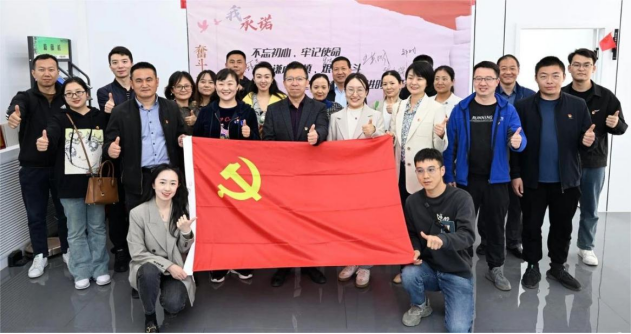 “青春模样”微定格,在党旗下合影,青年创客们展现青春向党、不负韶华的朝气和活力。
