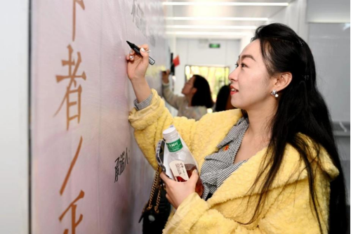 “青春奋进”我承诺,青年创客代表在主题海报上签名留念,承诺“不忘初心、牢记使命,谦虚谨慎、艰苦奋斗,燃起青春梦想,奋进时代征程!”