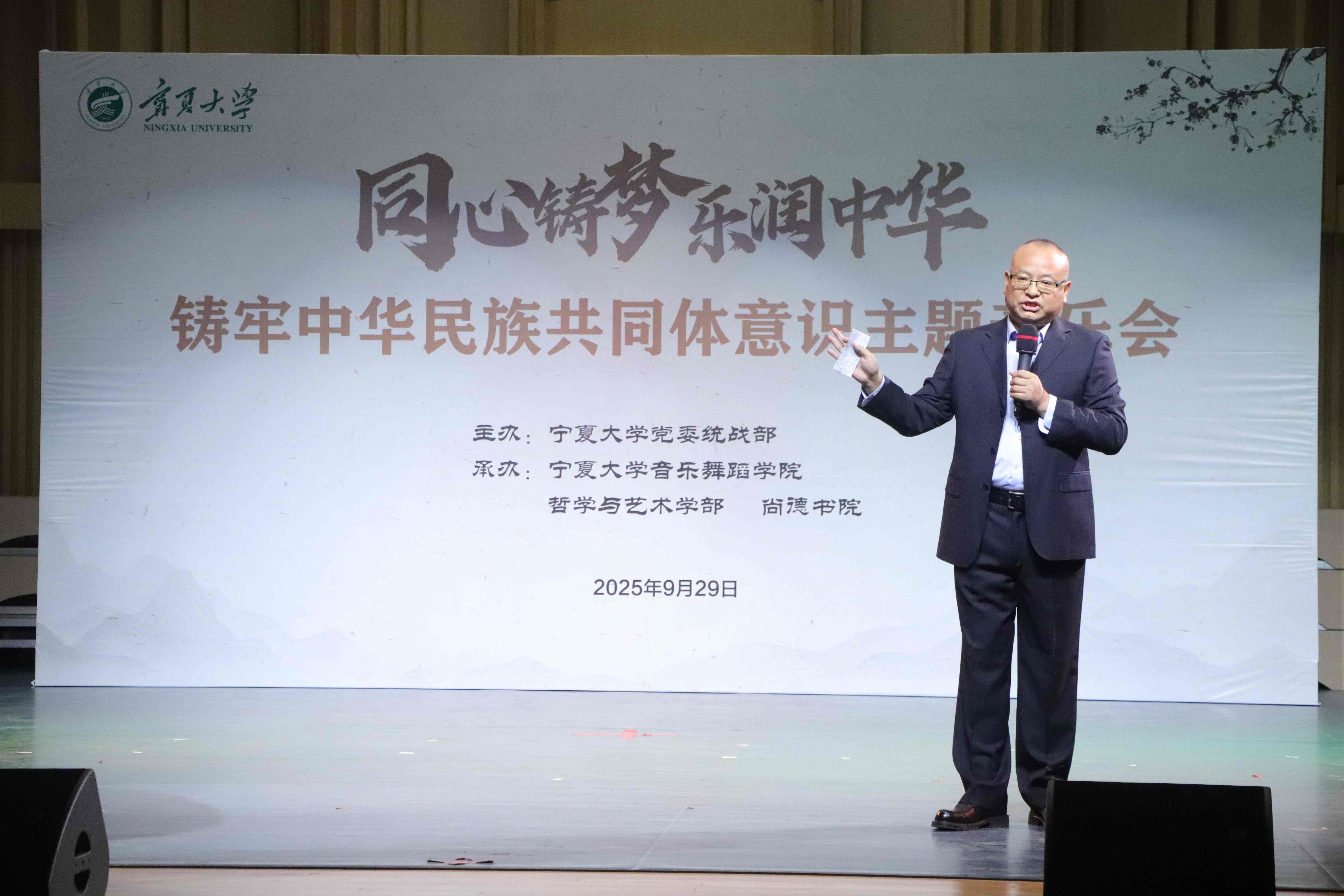 音乐舞蹈学院副教授张鹏珍在中场环节作了题为“音乐中的中华民族共同体”的精彩讲解。他系统阐述了铸牢中华民族共同体意识的重大意义,并通过梳理民族民间音乐的发展脉络,展现了各民族在文化上的兼收并蓄、情感上的相互亲近。