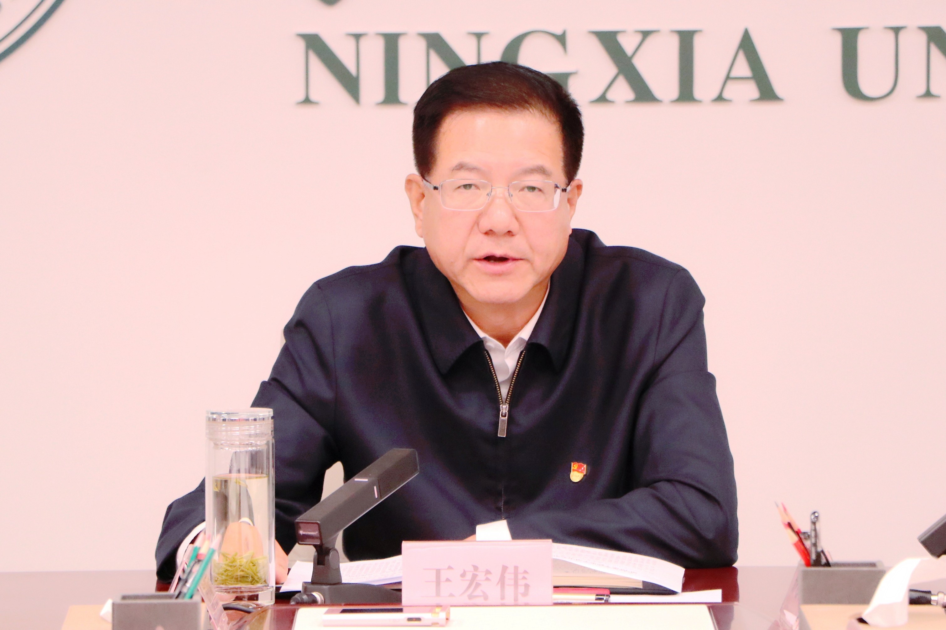 【bat365中文官方网站新闻中心讯 张景/文、图】为推动全校广泛深入学习贯彻《习近平谈治国理政》第五卷,充分发挥引领示范作用,10月15日,校党委理论学习中心组2025年第10次(扩大)学习会在贺兰山校区德勤楼10楼会议室召开,专题学习《习近平谈治国理政》第五卷。校党委书记王宏伟主持会议,校党委理论学习中心组成员、党委委员、纪委委员参加学习。