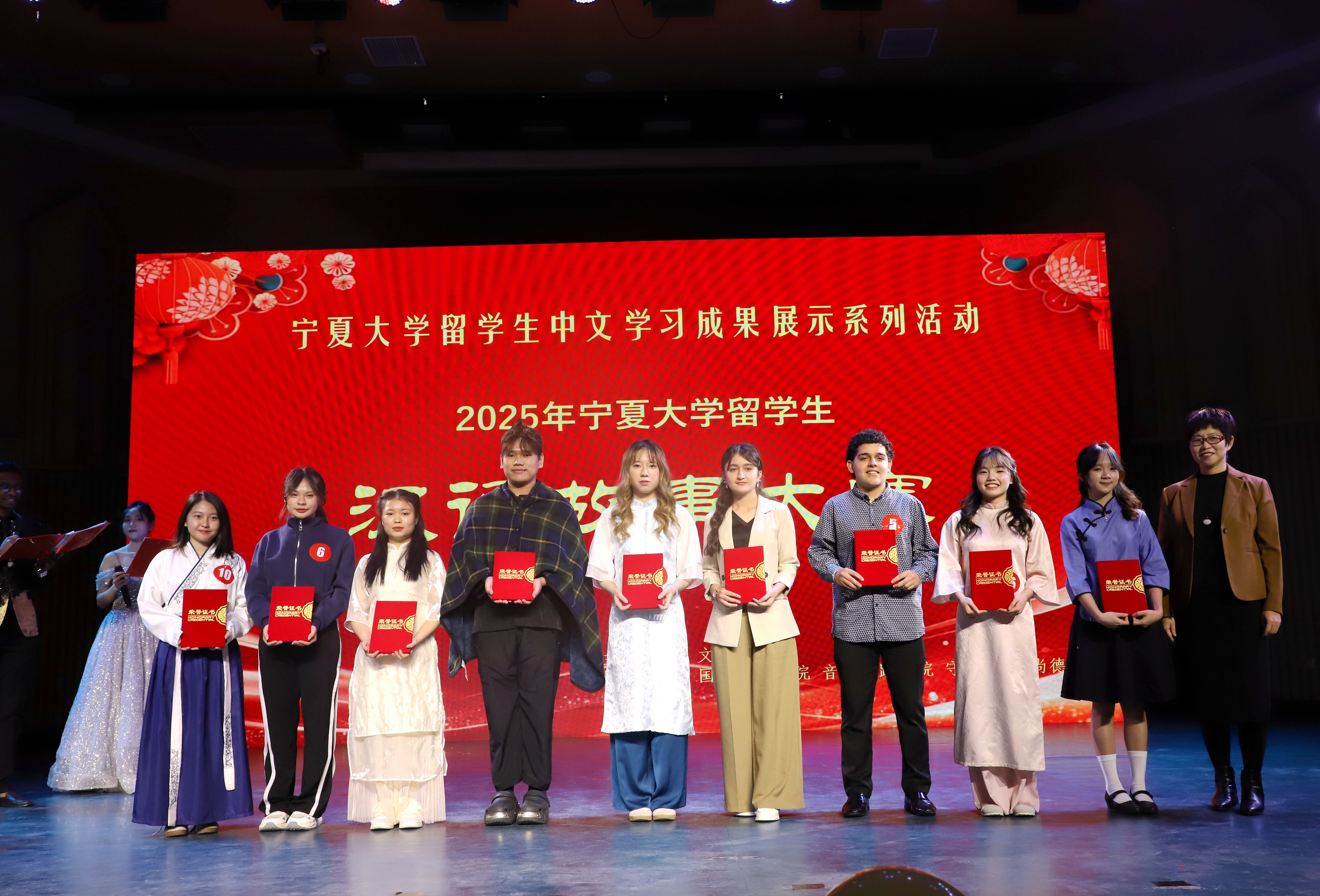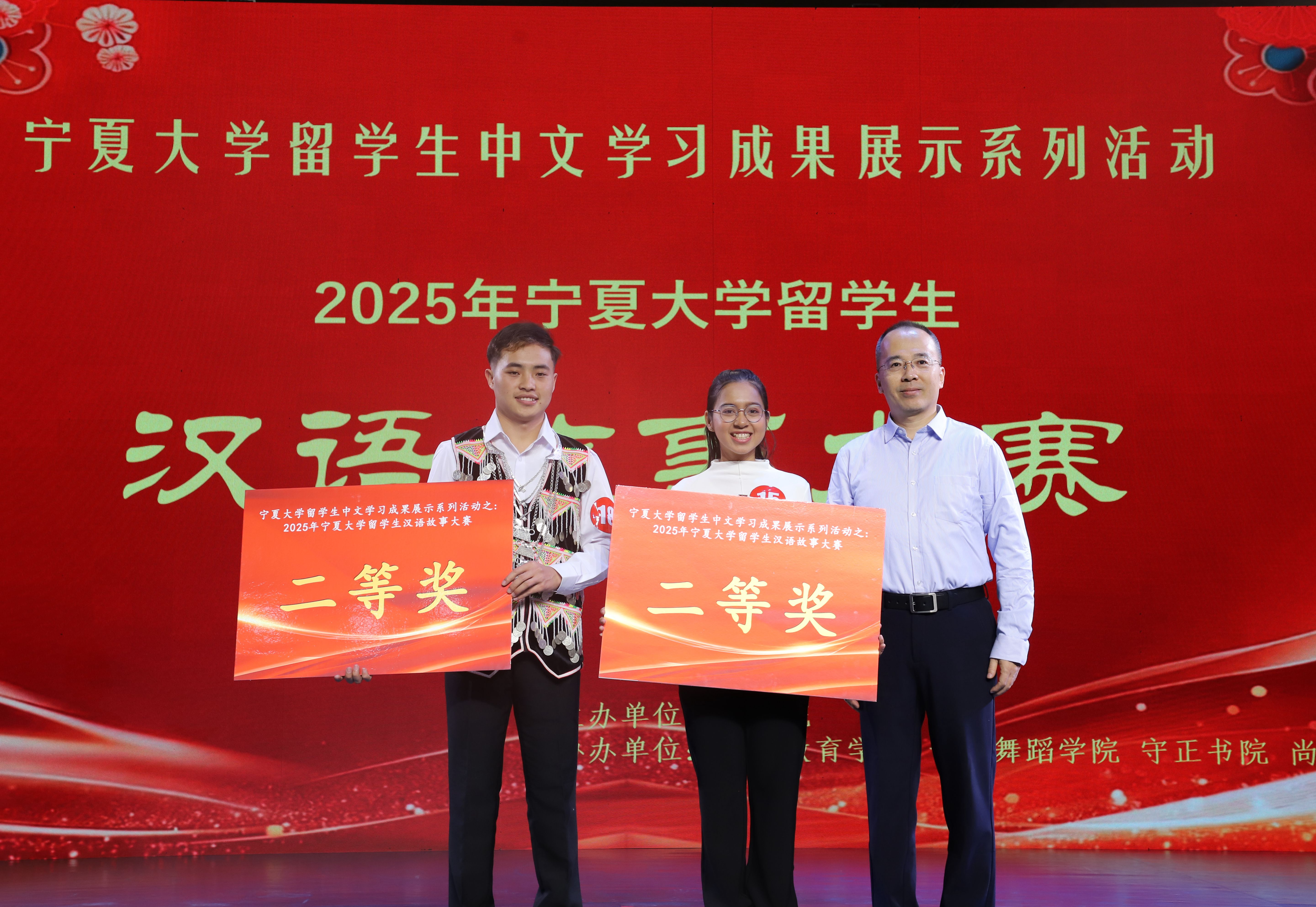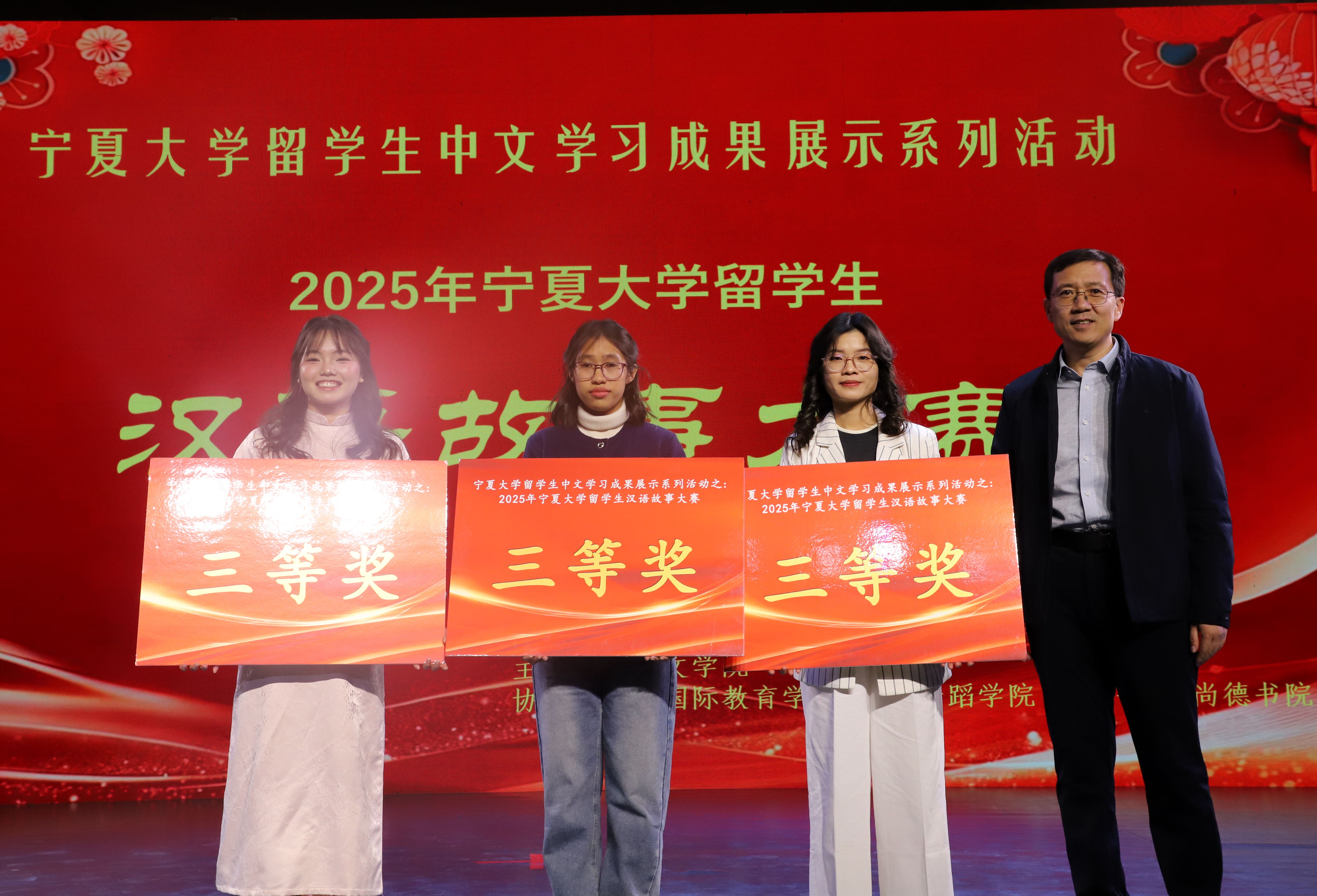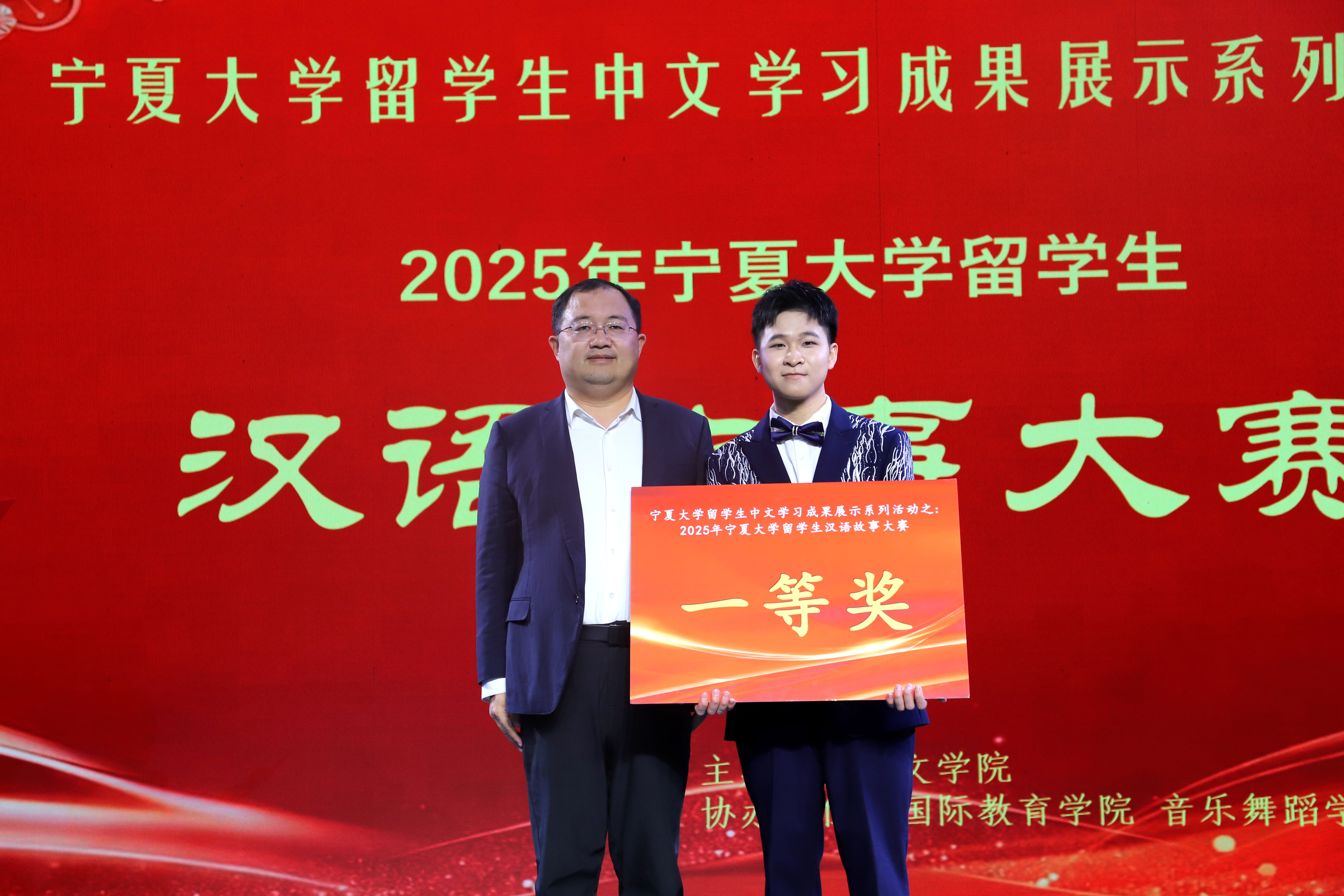 【bat365中文官方网站新闻中心讯 王文娣/文 王文娣 学生记者:张玉丽、李彤彤/图】11月19日,由bat365中文官方网站文学院主办,国际教育学院、音乐舞蹈学院、守正书院、尚德书院联合协办的2025年bat365中文官方网站留学生汉语故事大赛在贺兰山校区音乐厅举行。校党委常委、副校长杨文法,自治区教育厅对外合作交流处处长马建林、银川市西夏区第十一小学校长王义红参加活动,与来自多个国家的百余名留学生齐聚一堂,共赴这场语言故事之约。