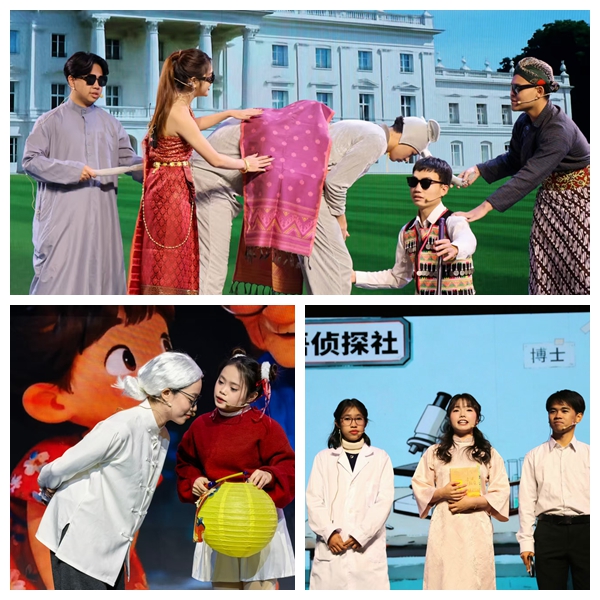 大赛分为“缘起东方”“文化寻踪”“史话传说”“心灵共鸣”“情谊长存”5个篇章,19组参赛作品题材丰富,涵盖个人成长、文化体验、经典改编、国际友谊等多个主题。从《我的中国情缘》中初遇汉语的悸动,到《纸灯笼的故事》里承载的亲情暖意;从《诸葛亮与草船借箭》的历史智慧,到《中老友谊,梦的桥梁》的跨国情谊,留学生们用流利的汉语、生动的表达,将个人经历与文化感悟融为一体。其中,创意舞台剧《大话东游》以新颖形式重构经典,《永不褪色的“白衣战旗”——致敬白求恩》传递国际主义精神,均赢得满堂喝彩。