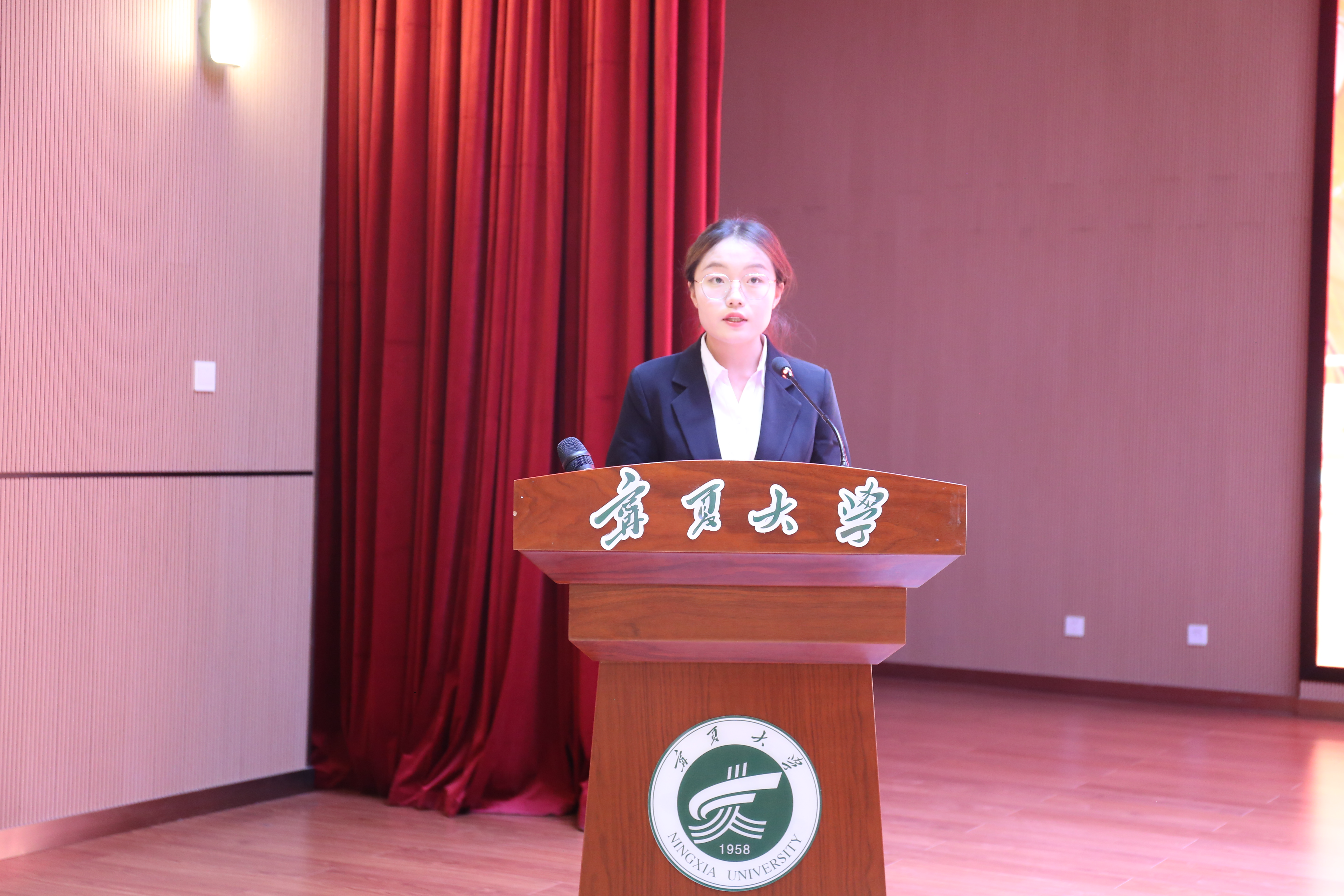 “贺兰英才”“骐骥计划”新生骨干培训班学员代表张厚承在发言中分享了闽宁镇研学等实践带来的成长感悟,提出要坚定理想、锤炼本领、互学互鉴,号召全体学员珍惜培训机会,将所学转化为服务同学们的动力,以实干书写青春篇章。