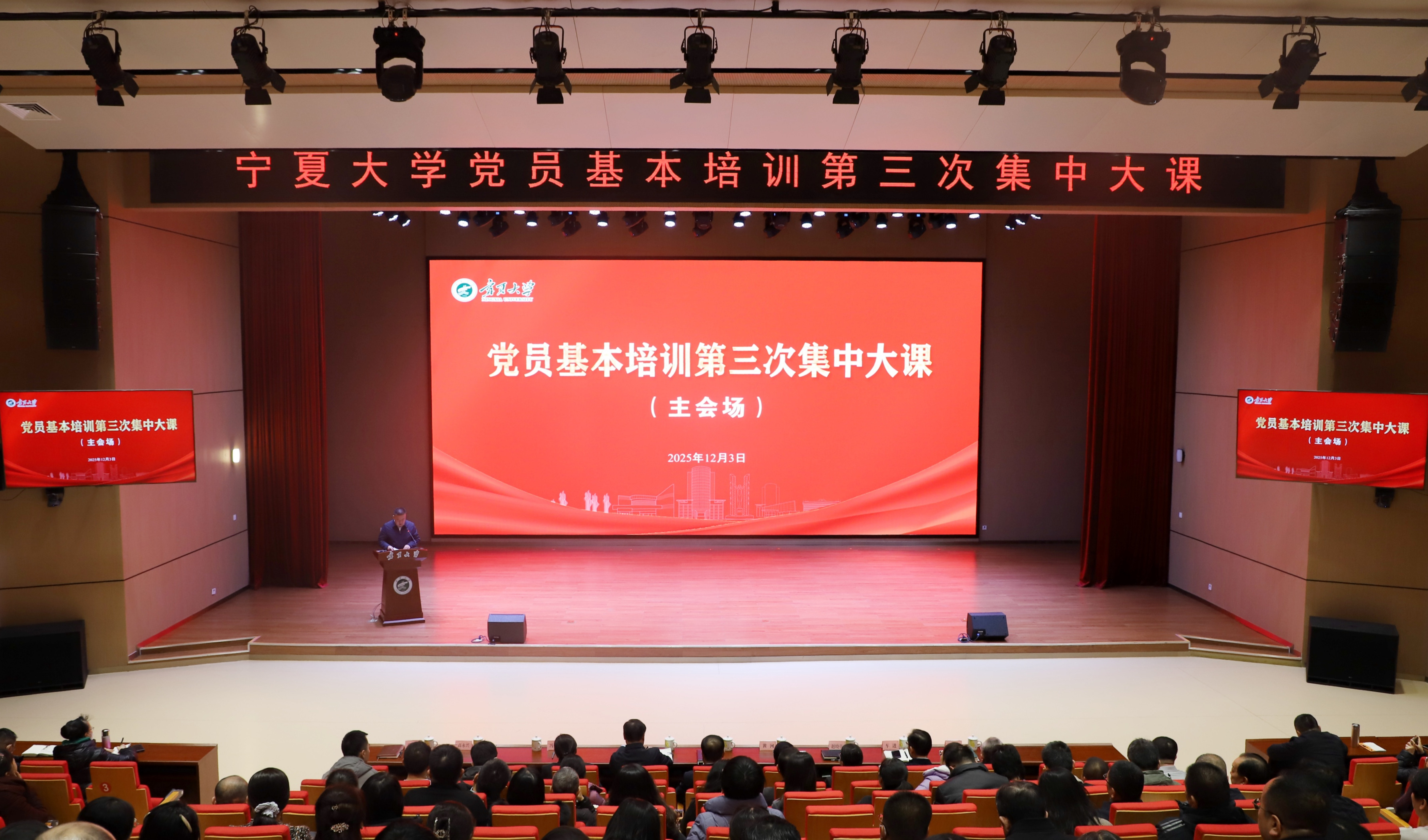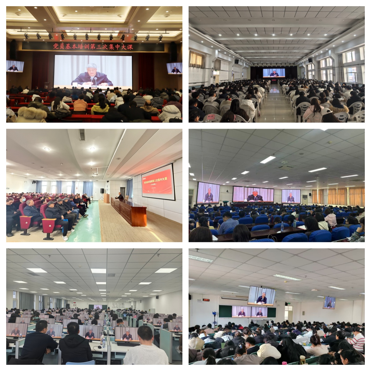 【bat365中文官方网站新闻中心讯 冯禹君/文 王文娣、各单位/图】为进一步强化全校党员理论水平和党性修养,切实提高党员队伍素质能力,按照自治区教育工委有关工作要求,12月3日,bat365官网组织全校党员开展党员基本培训第三次集中大课,学习中央党校(国家行政学院)副校长(副院长)谢春涛讲授的“中国共产党与中华民族伟大复兴”视频课程。全体在校校领导和全体教职工党员、离退休党员、学生党员在笃行楼1楼报告厅主会场和其他14个分会场同步参加大课学习。校党委副书记张桓主持培训会。