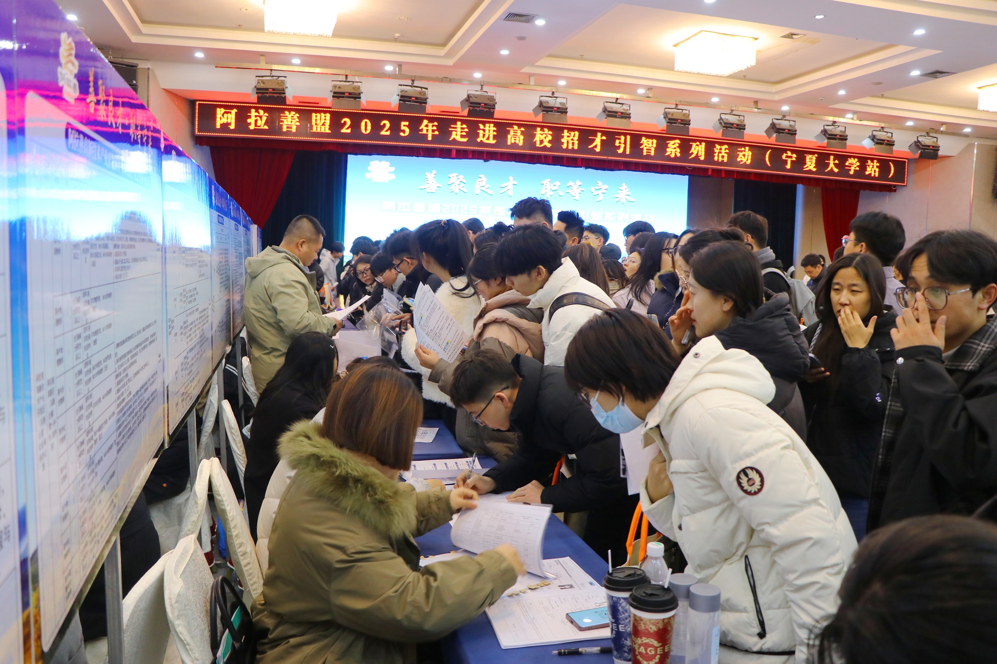招聘会现场气氛热烈,各用人单位展位前咨询者络绎不绝,踊跃交流互动。学生就职业发展、岗位要求、薪酬福利等关心的问题与招聘负责人进行深入沟通。本次招才引智活动精准对接宁夏各高校学科特色与阿拉善发展需求,共推出180个岗位,计划招聘466人。其中,30家企业提供87个岗位,招聘338人;19家事业单位提供93个岗位,招聘128人。岗位覆盖能源、生态、文旅、教育、医疗等多个重点领域,为不同专业背景的毕业生提供了丰富选择。