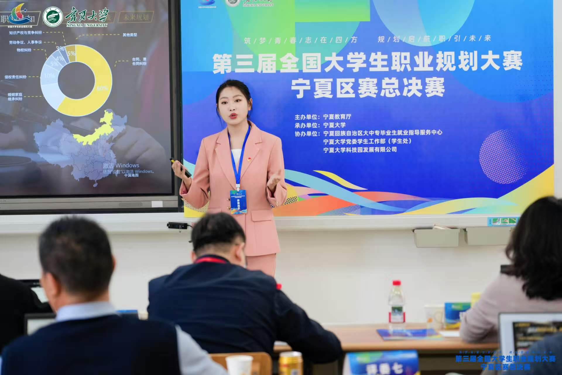 大赛以“志在四方筑梦青春,职引未来规划起航”为主题,围绕“以赛促学、以赛促教、以赛促就”的目标,设置成长赛道和就业赛道两个赛道,面向高教组与职教组学生开展比赛。经过前期校级选拔,来自宁夏各高校的320名优秀选手晋级区赛。比赛为期2天,共有105名来自高校及行业领域的专家担任评委,参与现场评审工作。