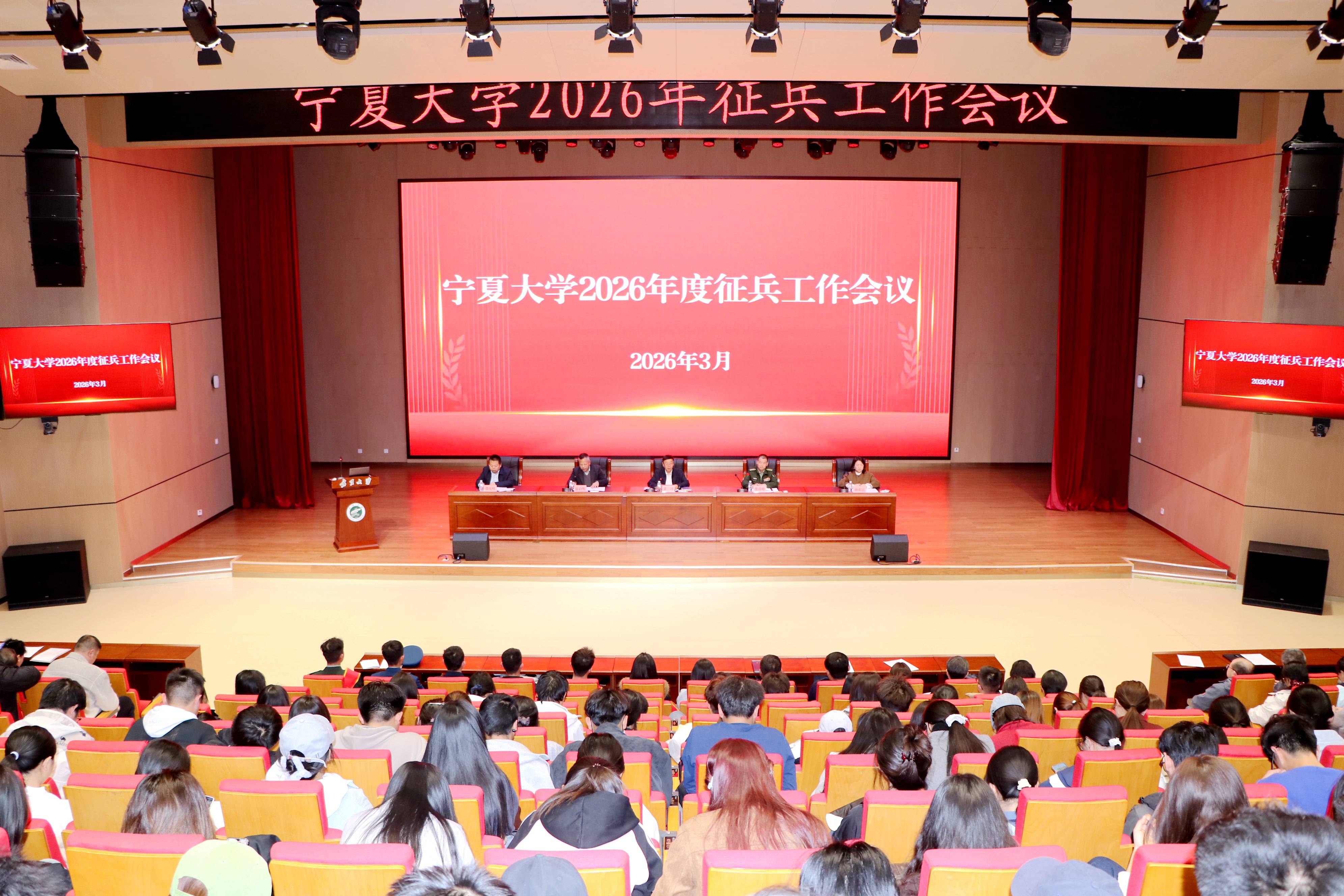【bat365中文官方网站新闻中心讯 张景/文、图】3月11日,bat365中文官方网站2026年度征兵工作会议在贺兰山校区笃行楼1楼报告厅举行,校党委常委、副校长黄河,银川警备区动员处上校处长娄彦峰出席会议,学校人民武装部(国防教育教学中心)部长(主任)张启明主持会议。