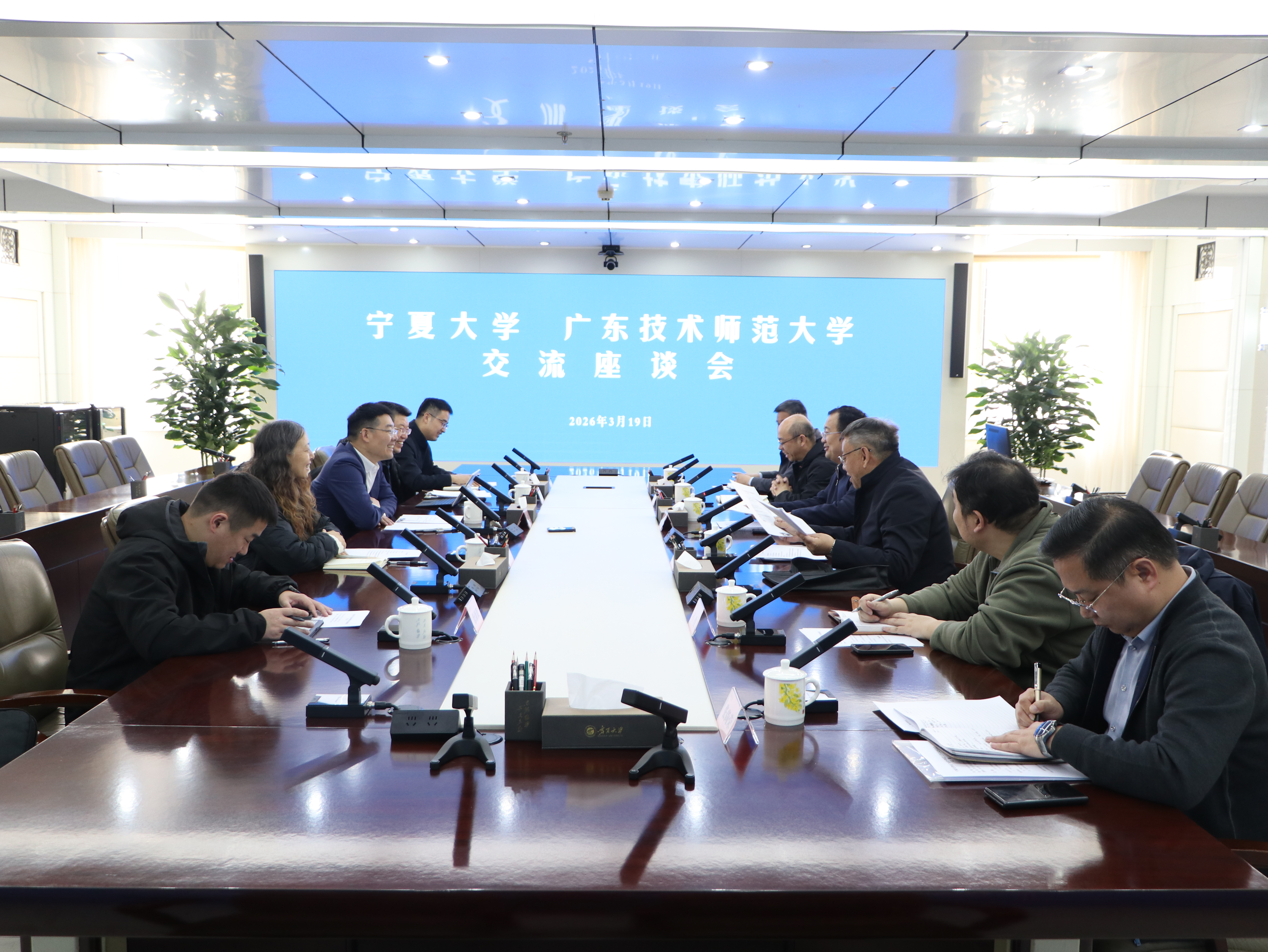 杨文法对王兵一行的到访表示欢迎,并围绕学校历史沿革、人才培养、师资队伍及特色学科建设等方面介绍了学校整体发展情况。他还结合宁夏枸杞、葡萄酒、牛奶、现代化工等特色产业,介绍了bat365中文官方网站围绕自治区重点产业布局所设置的学科专业。他表示,希望两校以黄河几字弯和粤港澳大湾区建设为契机,深化交流合作,携手为区域经济社会发展贡献力量。
