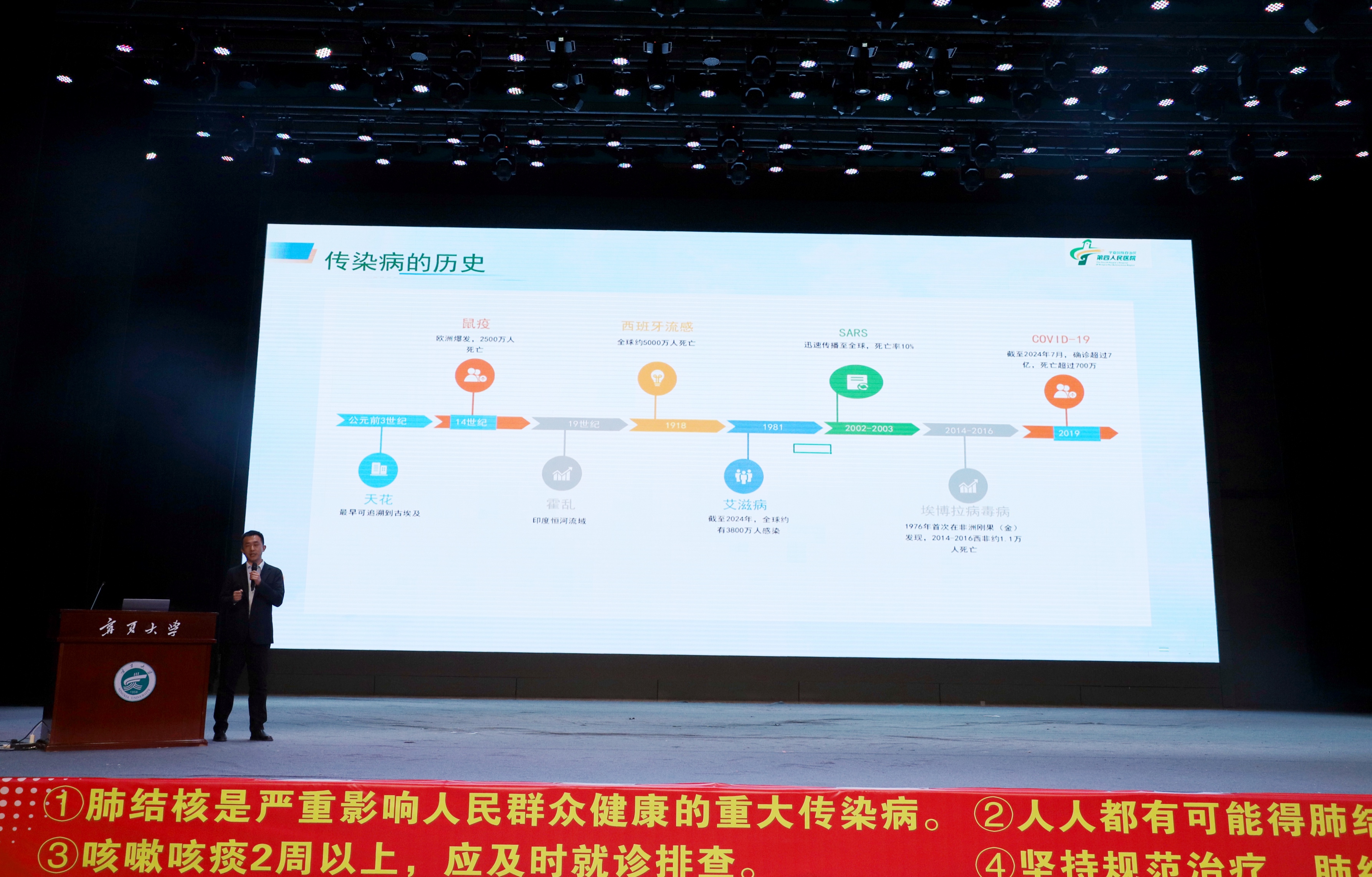 自治区第四人民医院副院长刘伯飞在现场为师生作结核病防治健康专题讲座,围绕结核病流行现状、典型症状、传播途径、防治措施及潜伏感染者预防性治疗等方面,作了内容翔实、深入浅出的防控知识普及,帮助师生系统掌握科学防护技能。