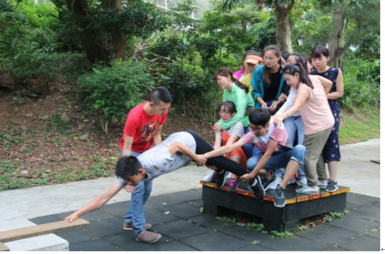 团队合作体验营活动上,同学们积极参与,挑战自我,互相信任,团结协作,很好地完成了安排的几项高难度的体验项目。虽然汗水湿透衣衫,皮肤磨破淤青,但这种体验带给大家的战胜自我的成功喜悦使大家忘却了一切辛苦,协作信任的力量瞬间拉近了大家的距离,感情上的认同感使同学们亲如姐妹兄弟。体验活动的深刻记忆,也成为了师生台湾行的一项重要收获。