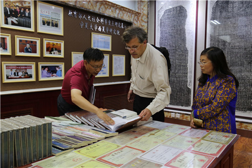 会议结束后,与会专家参观了西夏学研究院成果展览室、资料室及研究室。西夏学研究院、人文学院相关负责人参加了会议。