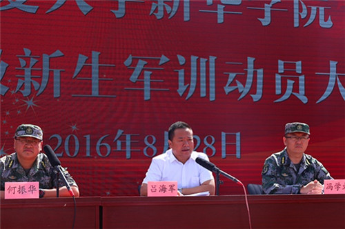 【bat365中文官方网站新闻中心讯 新华学院党委工作部】8月28日上午,新华学院2016级新生军训动员大会在中心区操场成功举行。新华学院党委副书记吕海军,学生处处长冯学文、副处长席博,后勤保障处副处长刘亚兵,承训部队领导李尊豪出席了大会,参训教师、承训部队教官以及2016级全体新生参加了大会。大会由教务处处长何振华主持。