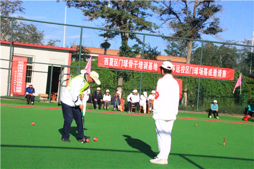 西夏区门球骨干培训基地落成当日举行了门球邀请赛,银川市老年门协、银川铁路、银川电力公司、石嘴山市军干所共15支门球队参赛。经过两天的激烈角逐,银川铁路、银川电力公司、翟靖巷社区三个门球队分获前三名。