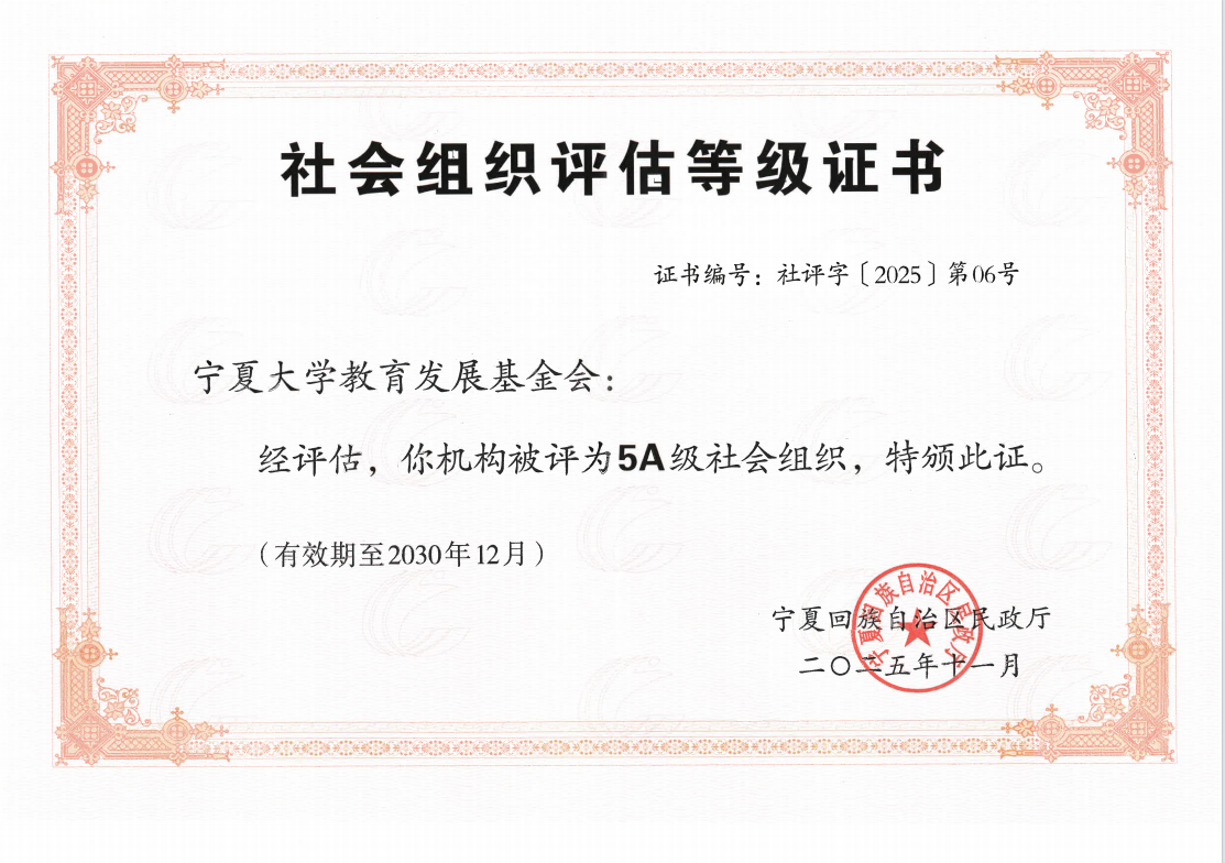 【bat365中文官方网站新闻中心讯 校友总会与教育发展基金工作办公室】近日,自治区民政厅公布2025年度社会组织等级评估结果,bat365中文官方网站教育发展基金会获评最高等级5A级社会组织,成为区内首个获此殊荣的高校基金会,为全区高校基金会的规范化、专业化发展树立了标杆。