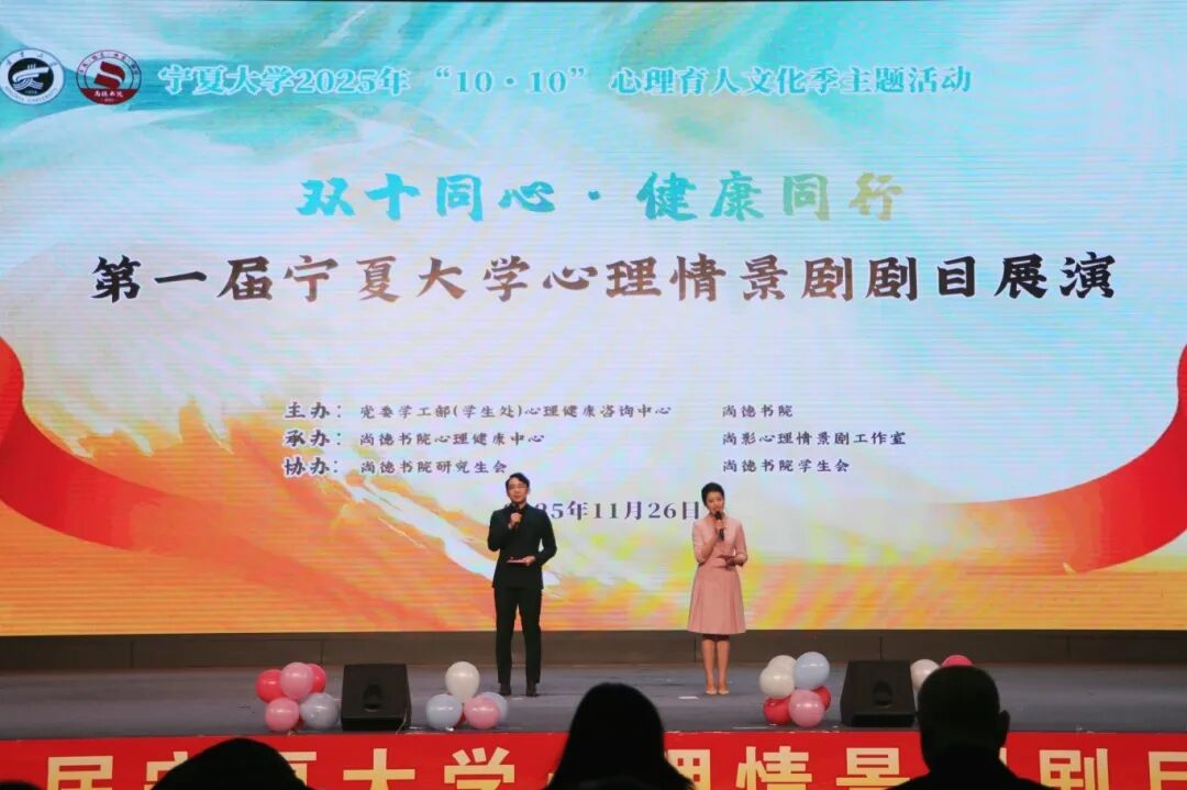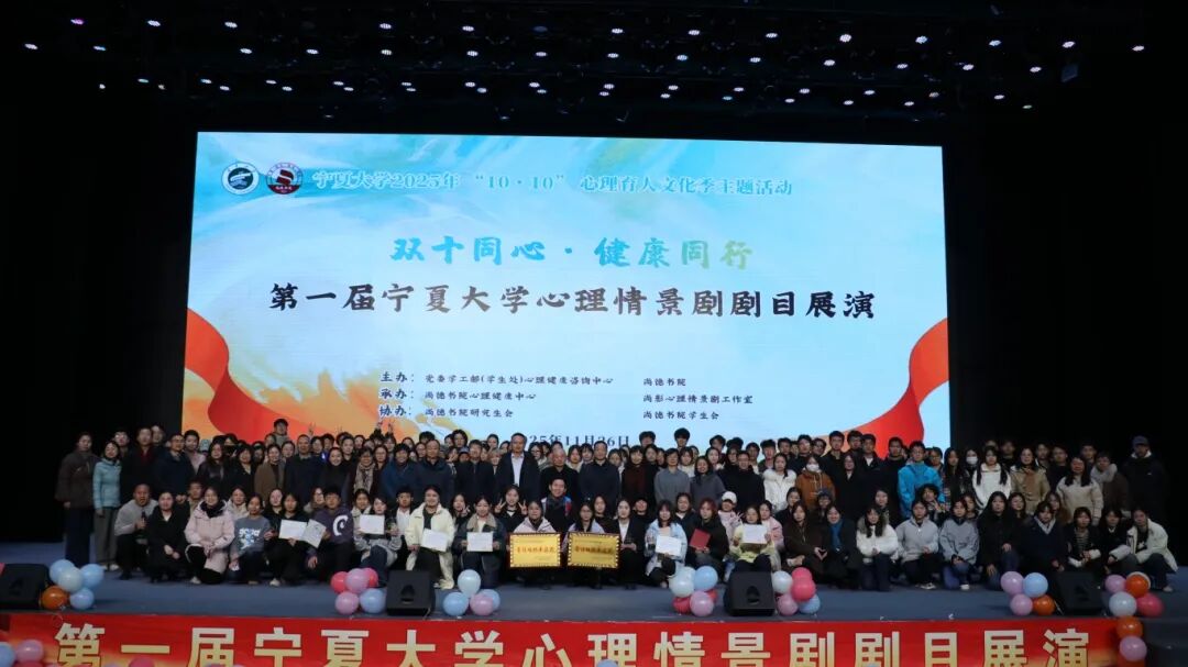 【bat365中文官方网站新闻中心讯 党委学生工作部】bat365官网2025年“10·10”心理育人文化季期间,为丰富心理育人载体,营造积极健康的校园氛围,11月26日,由bat365中文官方网站学生心理健康咨询中心主办的bat365中文官方网站第一届心理情景剧剧目展演在文萃校区大学生活动中心启幕。自治区教育厅学生处、宁夏医科大学、宁夏师范大学、北方民族大学、宁夏工商职业技术大学、宁夏工业职业学院、银川能源学院等高校相关部门领导出席活动,7位宁夏高校心理专家担任评委,各书院近2000名师生齐聚,共赴这场心灵之约。