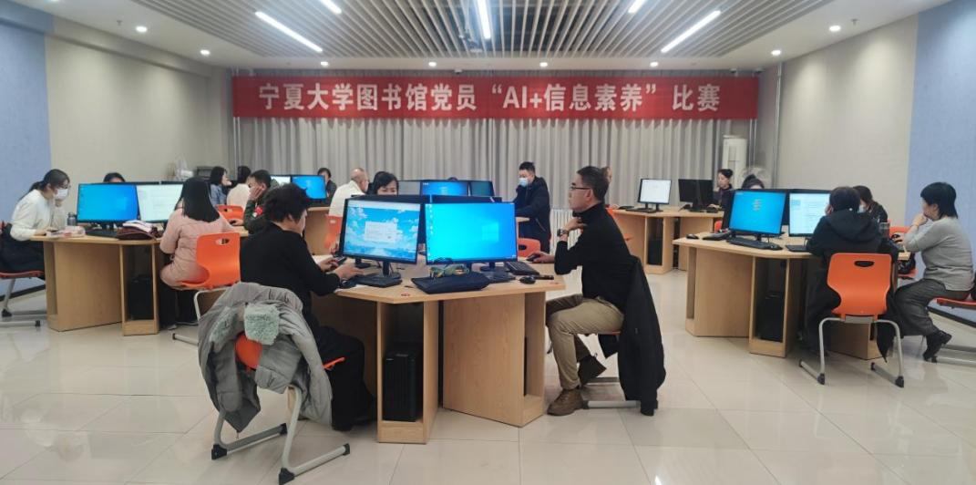 为了深入学习贯彻习近平新时代中国特色社会主义思想、党的二十届四中全会精神,推动党建与业务深度融合,图书馆举办了党员“AI+信息素养”比赛。比赛自10月启动,历时2个多月,赛程分为网络练习和现场决赛两个阶段。比赛内容包括党的政治理论知识,以及AI素养、信息检索等专业知识。决赛采用现场机考、专家评审的方式,最终决出了优胜者。