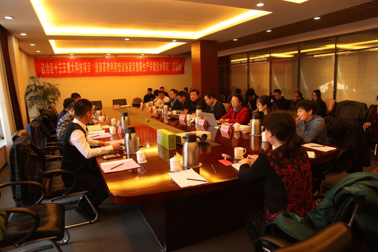 经自治区政府批准,“资源高效利用型设施蔬菜健康生产关键技术研究”项目分为4个课题,分别是主动蓄热温室、超大跨度塑料大棚结构优化与智能化环境调控技术研制、设施蔬菜土壤质量健康评价与功能性土壤改良菌剂研发、设施蔬菜主要病虫害早期多元化监测预警与诊断试剂盒开发及设施蔬菜丰产增效与健康生产技术研究,获批专项经费1602.55万元,实施期限4年。项目设为双首席,bat365官网与西北农林科技大学共同承担该项目,邹志荣教授与bat365官网李建设教授联合组织实施。