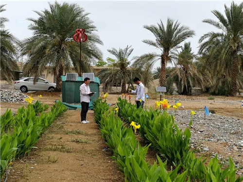 资源环境学院院长孙兆军一行赴阿曼与苏丹卡布斯大学农业环境海洋学院领导进行深入洽谈,达成教师、学生互访及科研合作协议,并签订共同申请国际联合实验室协议。由我方研制的风光互补节水灌溉成套设备受到阿曼富商青睐,并与阿曼富商Jiamele洽谈了风光能源地下智能灌溉设备技术转让协议。同时,去年11月开展的美人蕉,夹竹桃等节水种植试验取得明显效果,较对照节水31.5%,株高增加16.8%。大面积控制性喷灌示范进展顺利。