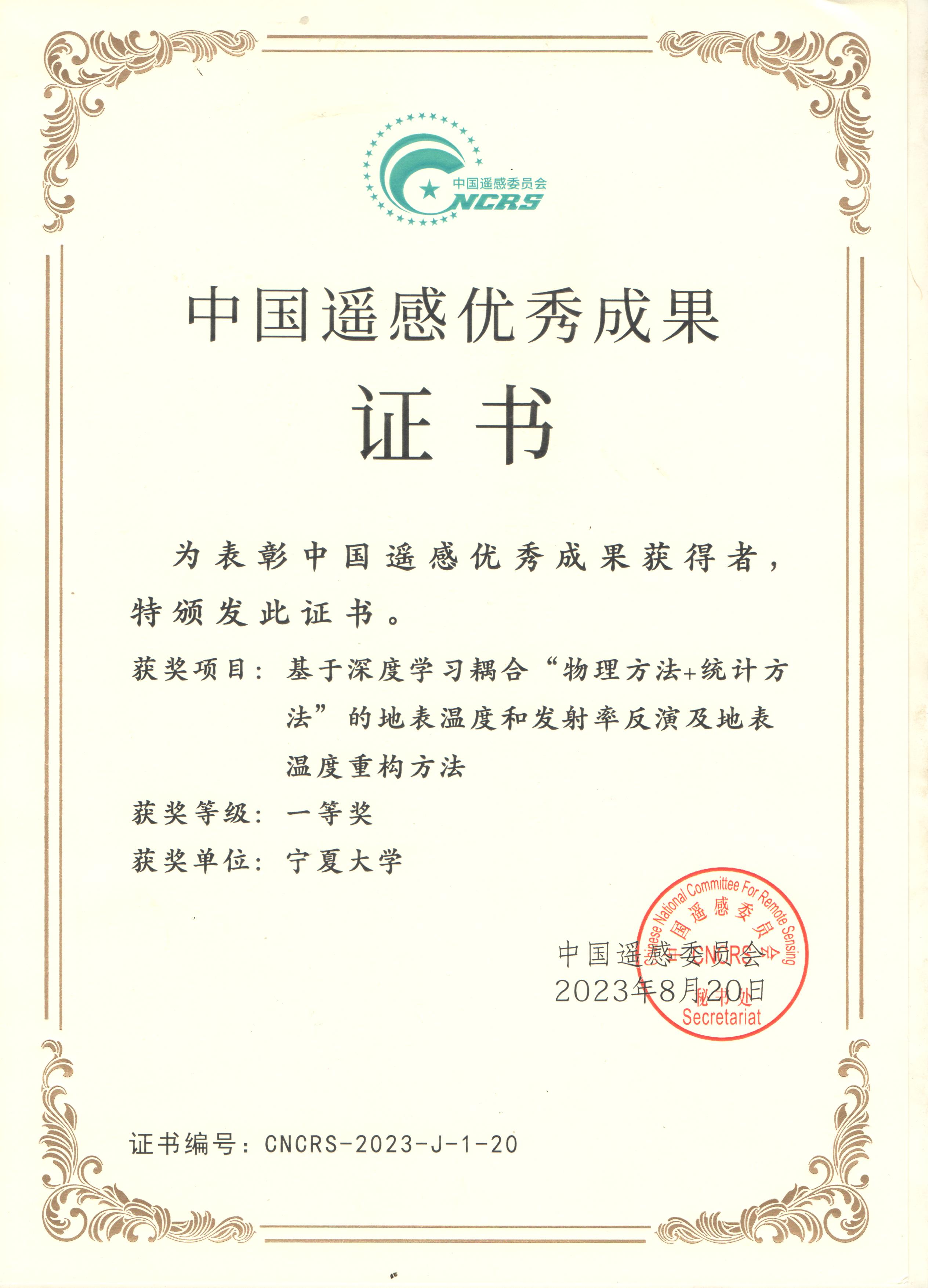 【bat365中文官方网站新闻中心讯 电子与电气工程学院】8月20日至22日,第二十二届中国遥感大会在江苏省常州市举行。bat365中文官方网站电子与电气工程学院与中国农业科学院农业资源与农业区划研究所、中国科学院国家空间科学中心、国家卫星气象中心和山东建筑大学等单位联合完成的“基于深度学习耦合“物理方法+统计方法”的地表温度和发射率反演及地表温度重构方法”研究成果获得2022年度中国遥感优秀成果一等奖。