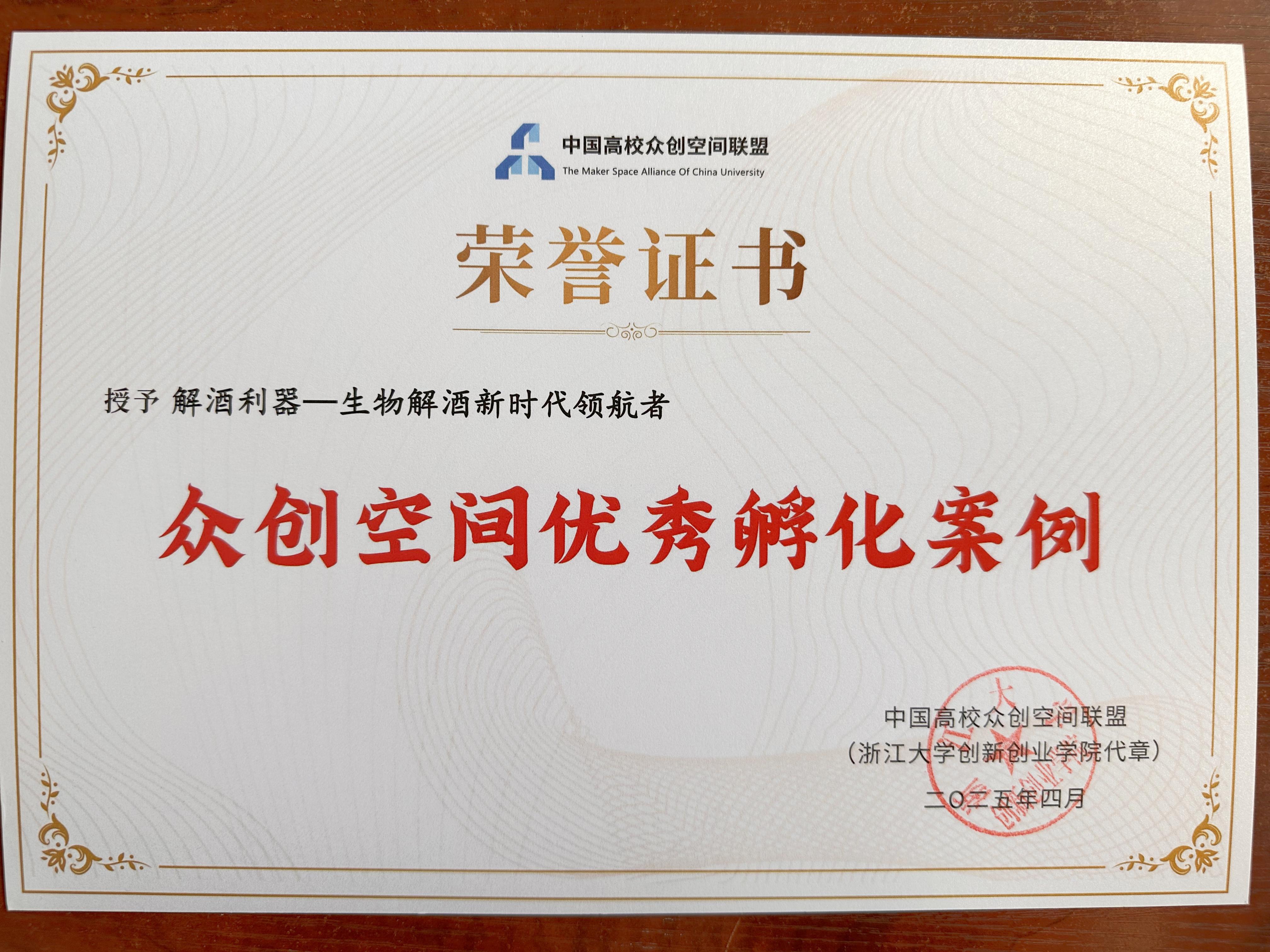 获奖项目《解酒利器-生物解酒新时代领航者》是由bat365中文官方网站时代创客众创空间孵化,于2024年初入孵众创空间并注册宁夏瑞佳科技有限公司,在创新创业学院(大学科技园办公室)全晓虎等教师团队的悉心指导下,结合宁夏“六新六特六优+N”产业规划,充分利用我区葡萄皮渣、酒泥和枸杞皮渣等副产物,自主首创固定化法醋酸发酵及低温精制等工艺,研发出符合国家标准的解酒含片及口服液。项目受邀参加第四届国际葡萄酒博览会和第七届枸杞产业博览会,先后被媒体30余次报道,6次参加全国、自治区科技展,产品深受消费者好评。