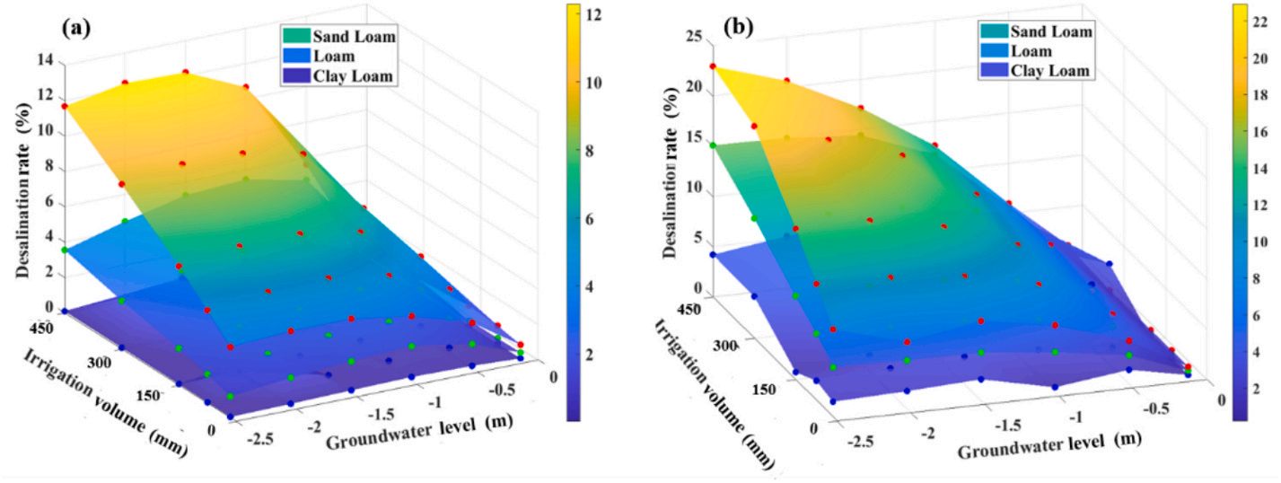 不同土质、灌溉量、地下水位条件下的灌后脱盐率