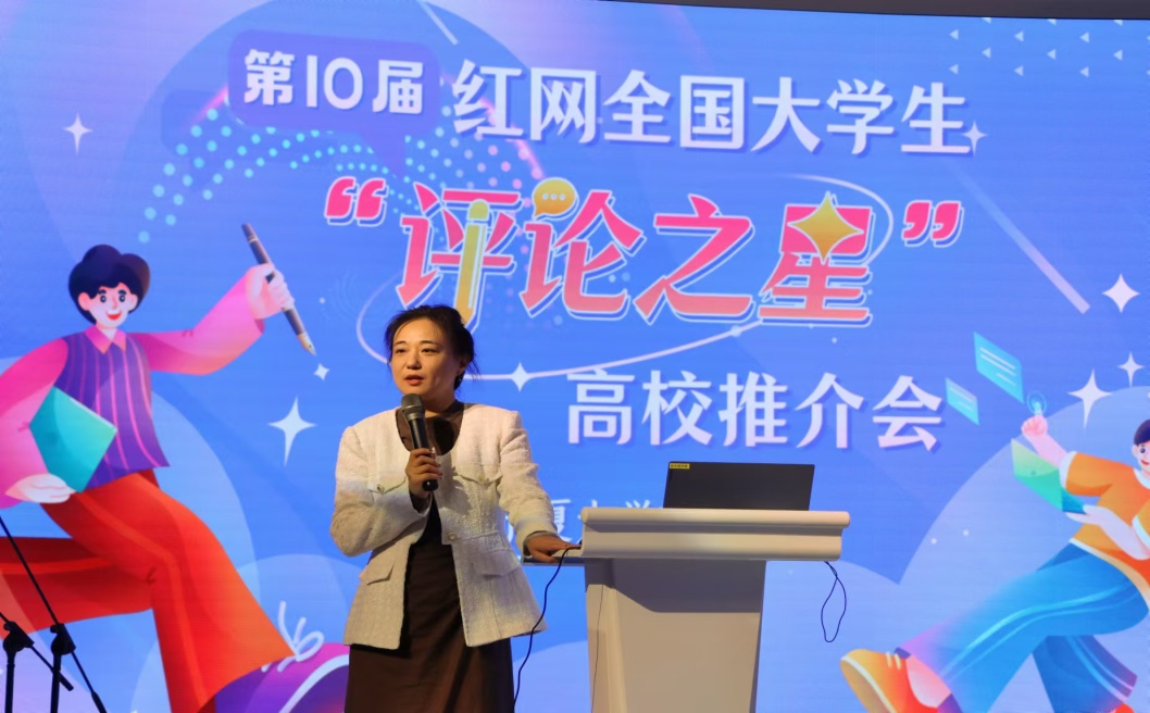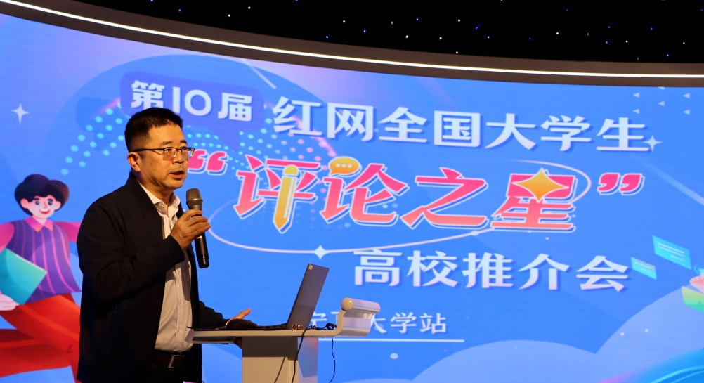 bat365中文官方网站新闻传播学院教授谢明辉推介“评论之星”选拔赛。图/买佳丽