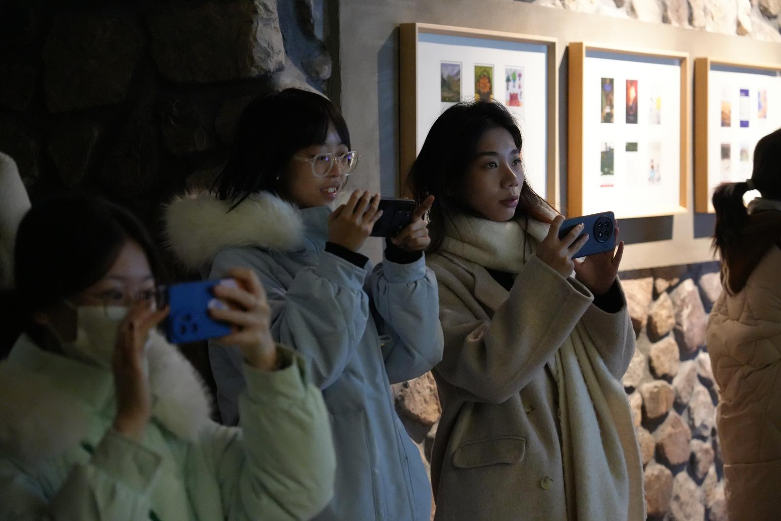 学生拍照留念。