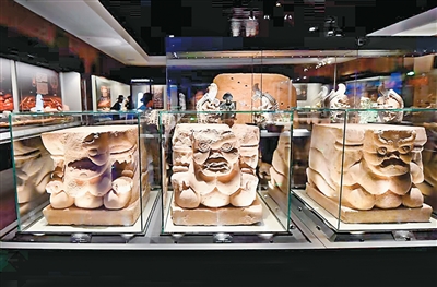 西夏陵博物馆展出的石雕力士支座。银川西夏陵区管理处供图
