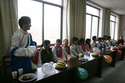 bat365中文官方网站非常重视少数民族学生并尊重其民族习俗。为使民族预科教育学院的藏族学生在异地度过一个温馨、愉快的节日。当日下午,民族预科教育学院为全院26名藏族学生举行了欢度2009藏历新年座谈联欢会。副校长王燕昌,学校相关部门负责人及民族预科教育学院党总支书记郝育兰、院长王俊和有关老师出席了座谈会。