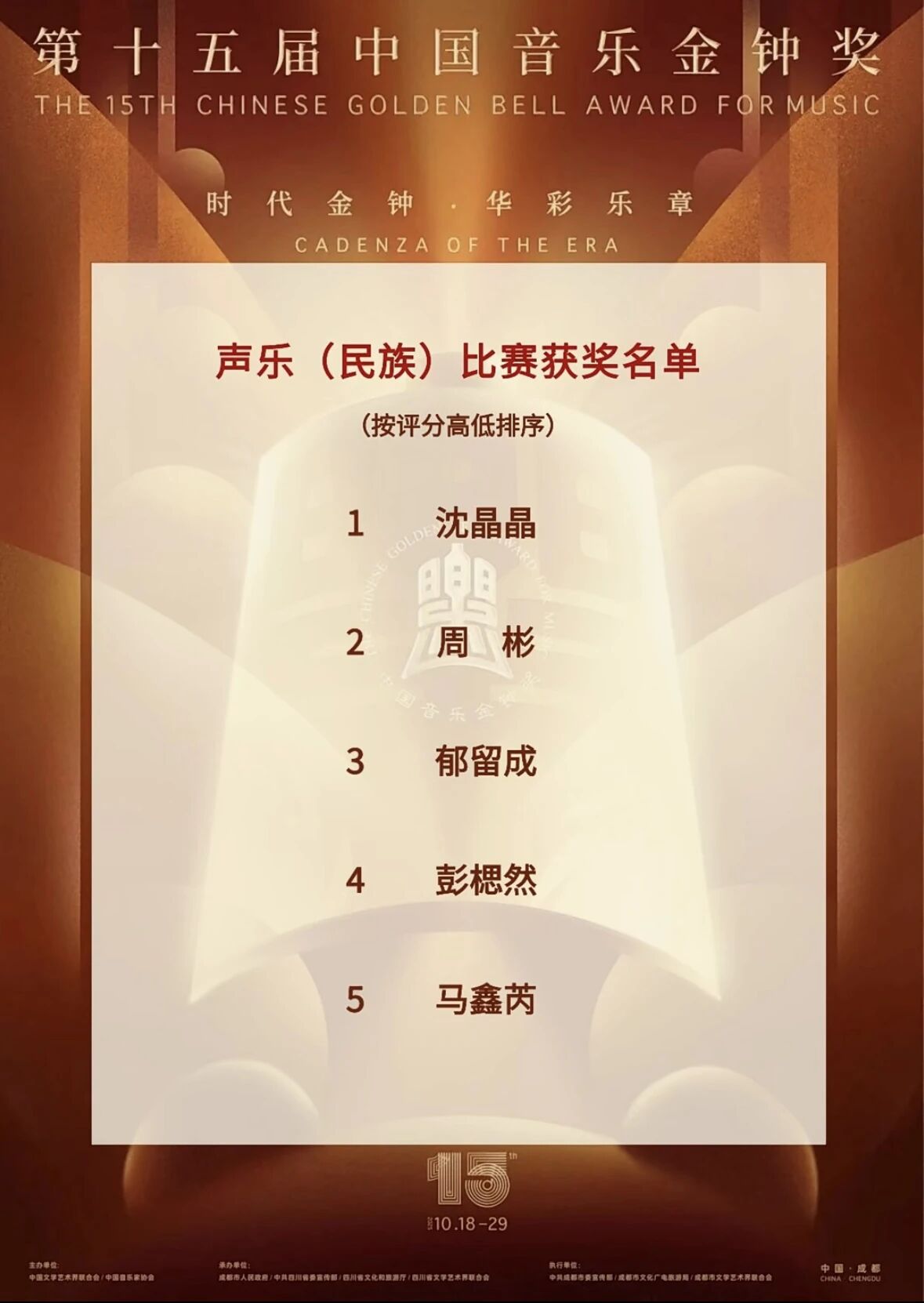 【bat365中文官方网站新闻中心讯 哲学与艺术学部】近日,第十五届中国音乐金钟奖声乐(民族)比赛决赛圆满落幕,bat365官网音乐舞蹈学院2017届毕业生马鑫芮凭借精湛的演唱技艺和深情的艺术表现荣获第十五届中国音乐金钟奖。