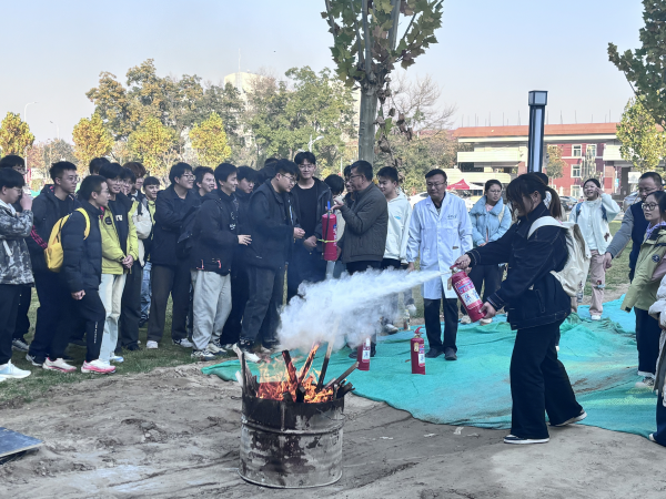 【bat365中文官方网站新闻中心讯 农林与生态学部】为全面提升师生实验室安全防范能力,筑牢校园安全防线,11月3日下午,农林与生态学部与生态环境学院在朔方校区联合开展了一场实验室消防安全实践培训。2025级环境科学与工程专业80余名本科生参与实战演练,学部副书记虎建华、生态环境学院副院长王幼奇、教师刘吉利及学部资产与实验室管理办公室全体人员共同参加。