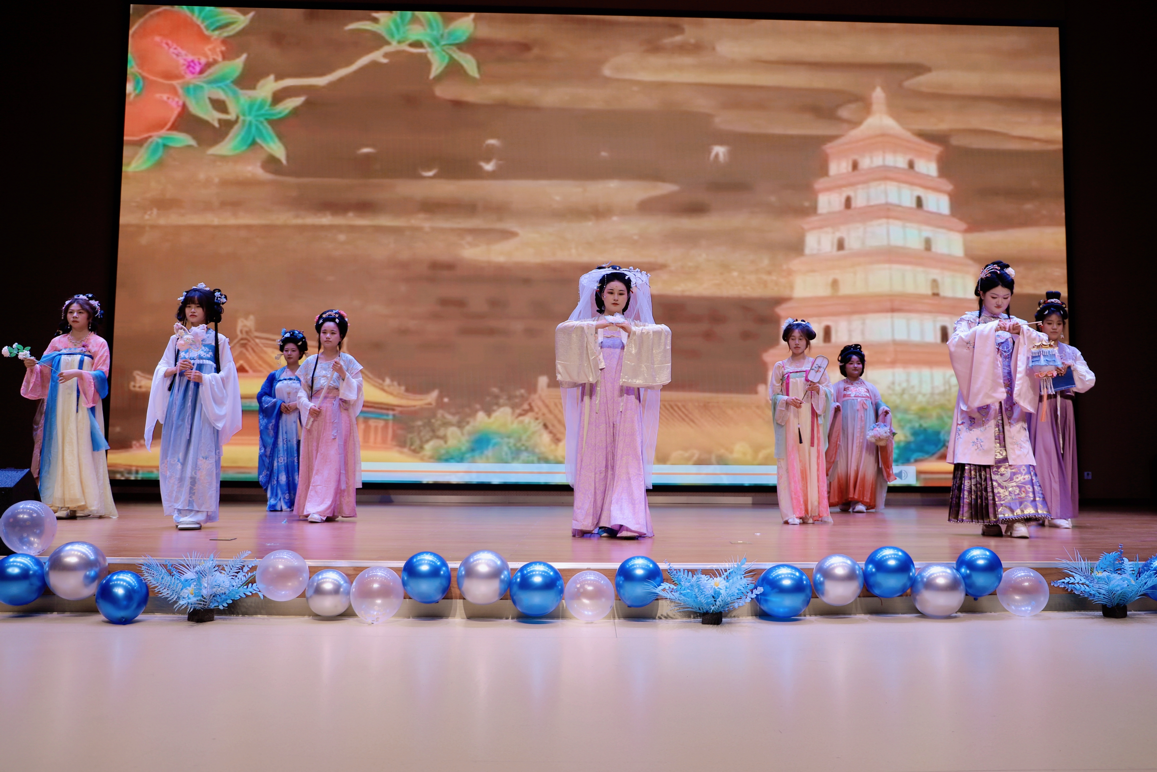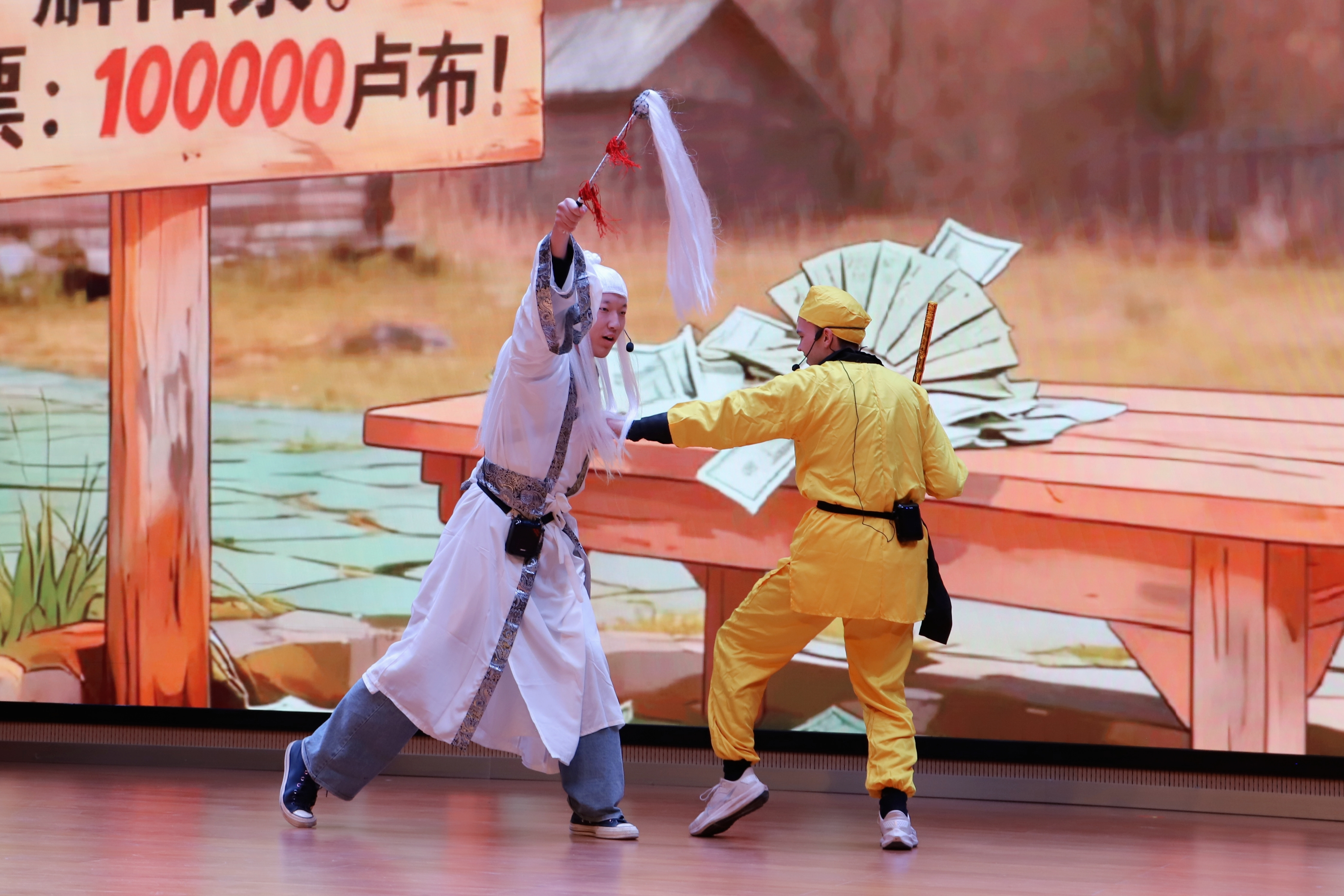 赵永军致辞并宣布比赛启幕。伴着《Someone You Loved》的悠扬旋律缓缓流淌,U-Talk外语协会成员以饱含真挚情感的嗓音,为大赛拉开了华丽序幕。2024级俄语班带来的《西游记之莫斯科郊外的女儿国》,对经典名著进行了别出心裁的演绎,寄寓着“千里同好,天下大同”的美好愿景;2024级英语二班的《芭比之魅力公主学院》,将勇气力量与真我魅力展现得淋漓尽致;2024级英语(师范)二班的童话新编《白雪:荆棘与玫瑰之歌》,生动传递了当代社会的互助理念;2024级英语一班的《哈利·波特》,深刻诠释了友情的珍贵,让这场奇幻之旅满溢热血与温情;2024级英语(师范)一班的《疯狂动物城》,则诉说着“坚守初心,梦想终会绽放绚烂繁花”的美好期许;雅寒历史文化社献上的精彩汉服走秀,一袭袭秀美华夏霓裳,既尽显传统服饰的典雅韵味,更彰显了先贤智慧与东方诗意。