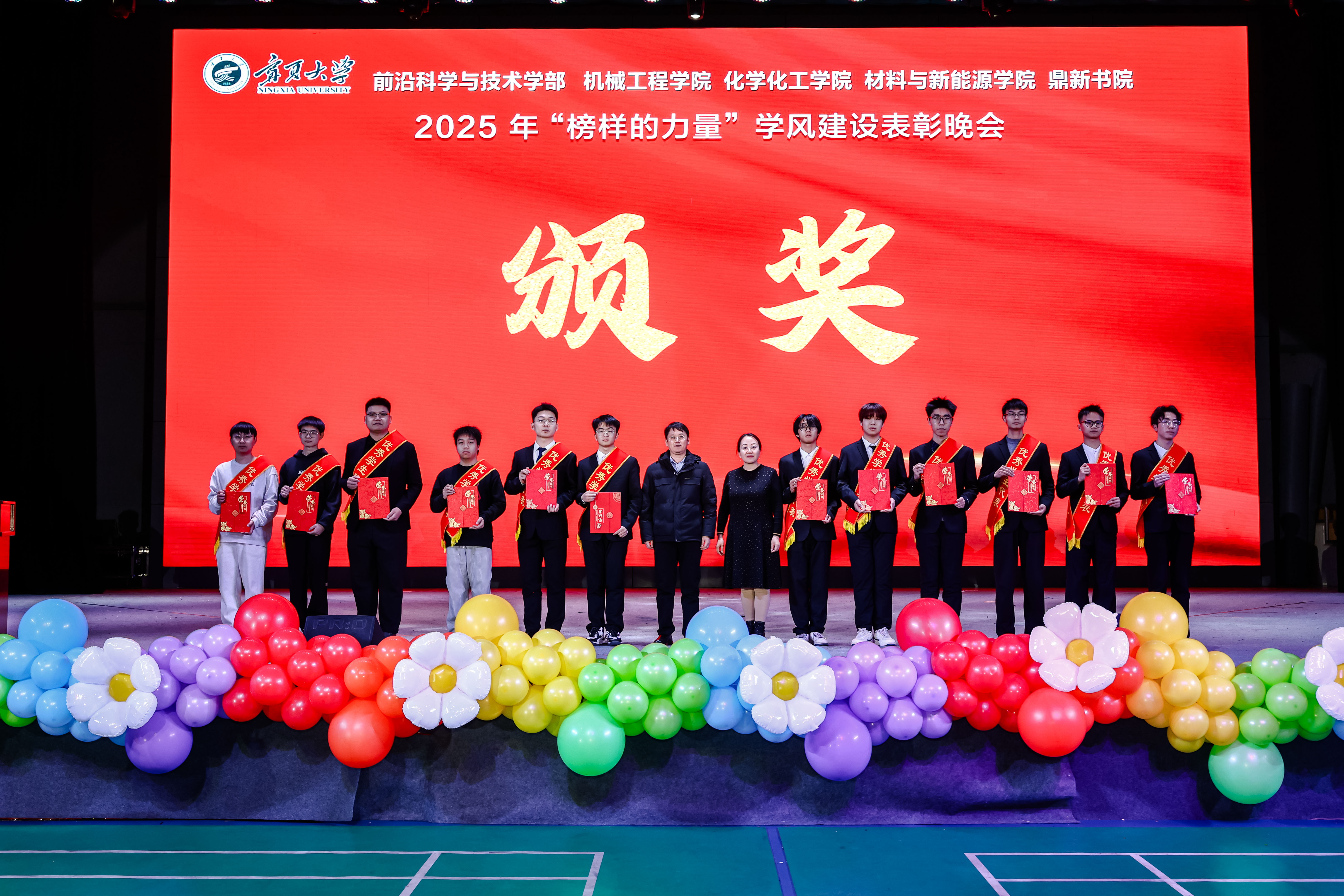 【bat365中文官方网站新闻中心讯 鼎新书院】12月19日晚上7时,前沿科学与技术学部、机械工程学院、化学化工学院、材料与新能源学院及鼎新书院联合举办的2025年“榜样的力量”学风建设表彰晚会在大学生活动中心举行。鼎新书院党委副书记黄旭兴主持晚会,学部、学院领导、班主任代表及鼎新书院全体辅导员出席。