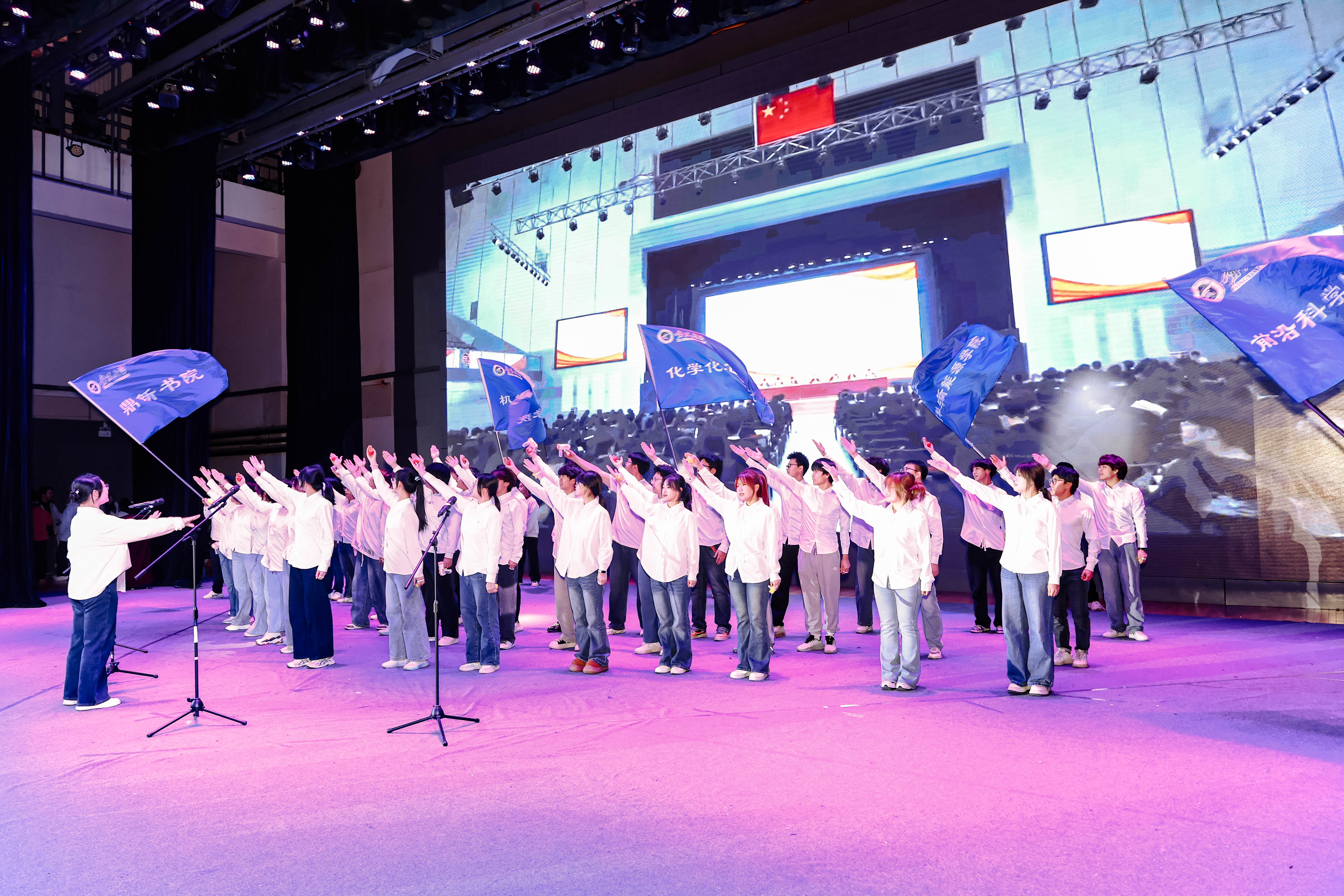 文艺表演环节精彩纷呈,“青春之歌”宣讲团带来诗朗诵《青春中国》,“向阳而生”情景心理剧团演绎《宁做我》,师生快闪《堕》、特别节目《辞家千里》及“鼎新之声”合唱队演唱的《我们是年轻的大学生》,为晚会增添了浓厚的青春氛围。