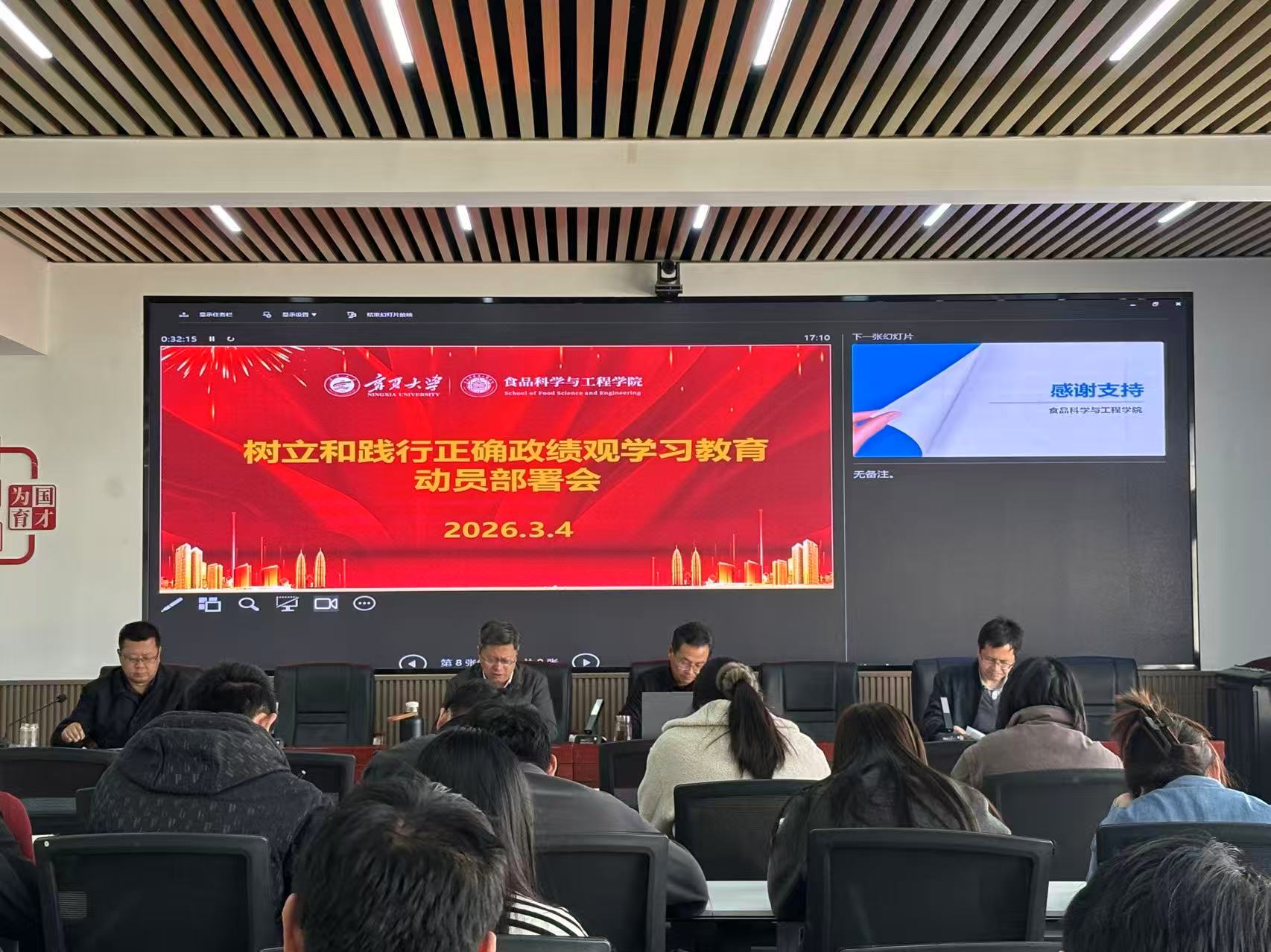 【bat365中文官方网站新闻中心讯 食品科学与工程学院】3月4日下午,食品科学与工程学院树立和践行正确政绩观学习教育动员会在明远楼512会议室召开,全体教职工参加会议。