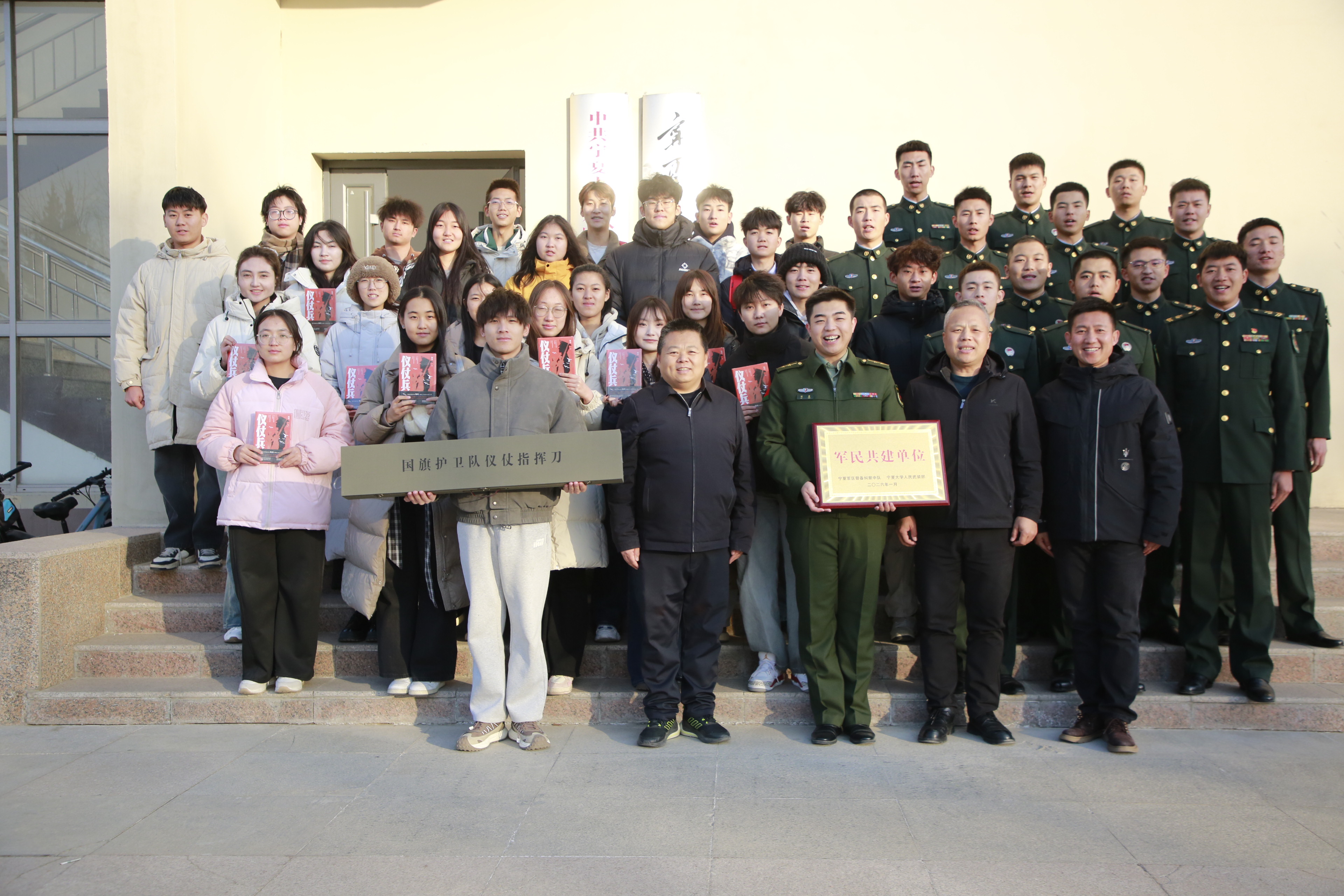 【bat365中文官方网站新闻中心讯 人民武装部】12月26日下午,人民武装部(国防教育教学中心)与宁夏军区某中队在校园开展了军民共建活动,活动以“深化军民融合、共育时代新人”为主题,通过实地参观、座谈交流,进一步巩固了军地情谊,拓宽了国防教育协同育人路径。活动伊始,中队官兵一行参观了人武部正规化建设和国防教育文化长廊,详细了解了高校武装工作的组织架构、职能定位及近年来在征兵动员、学生军训、国防教育、国旗护卫队建设等方面取得的成果。官兵们对bat365中文官方网站武装工作的规范化建设和特色实践给予了高度评价。随后,中队官兵结合承担自治区重大活动升旗任务的实践,围绕升旗仪式组织、训练等内容与bat365中文官方网站国旗护卫队队员进行了交流,并向学校人民武装部及校国旗护卫队赠送了国旗护卫队训练用具、纪实书籍《仪仗兵》和纪念品。人民武装部(国防教育教学中心)部长(主任)张启明表示,双方建立了良好的共建关系,今年7月双双被自治区授予“双拥模范集体...