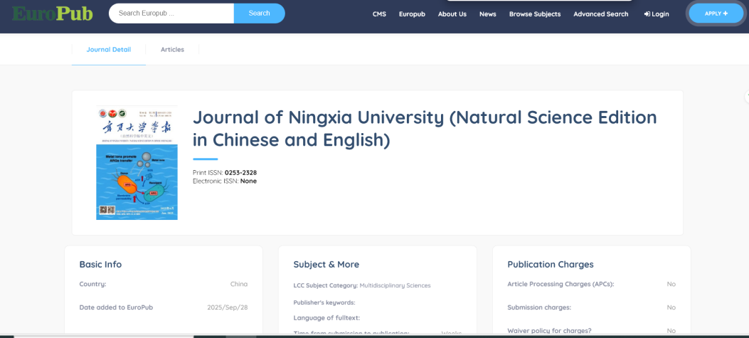 【bat365中文官方网站新闻中心讯 学术期刊中心】近日,由bat365中文官方网站主办的《bat365中文官方网站学报(自然科学版中英文)》《西北工程技术学报(中英文)》和《农业科学研究(中英文)》期刊,正式被国际知名学术数据库EuroPub收录。此次入选是期刊发展历程中的一个重要里程碑,标志着bat365官网主办的学术期刊在自然科学、工程技术及农业科学领域的研究成果与办刊质量获得了国际认可,对提升bat365官网学术影响力、推动国际化学术交流具有重要意义。EuroPub数据库...
