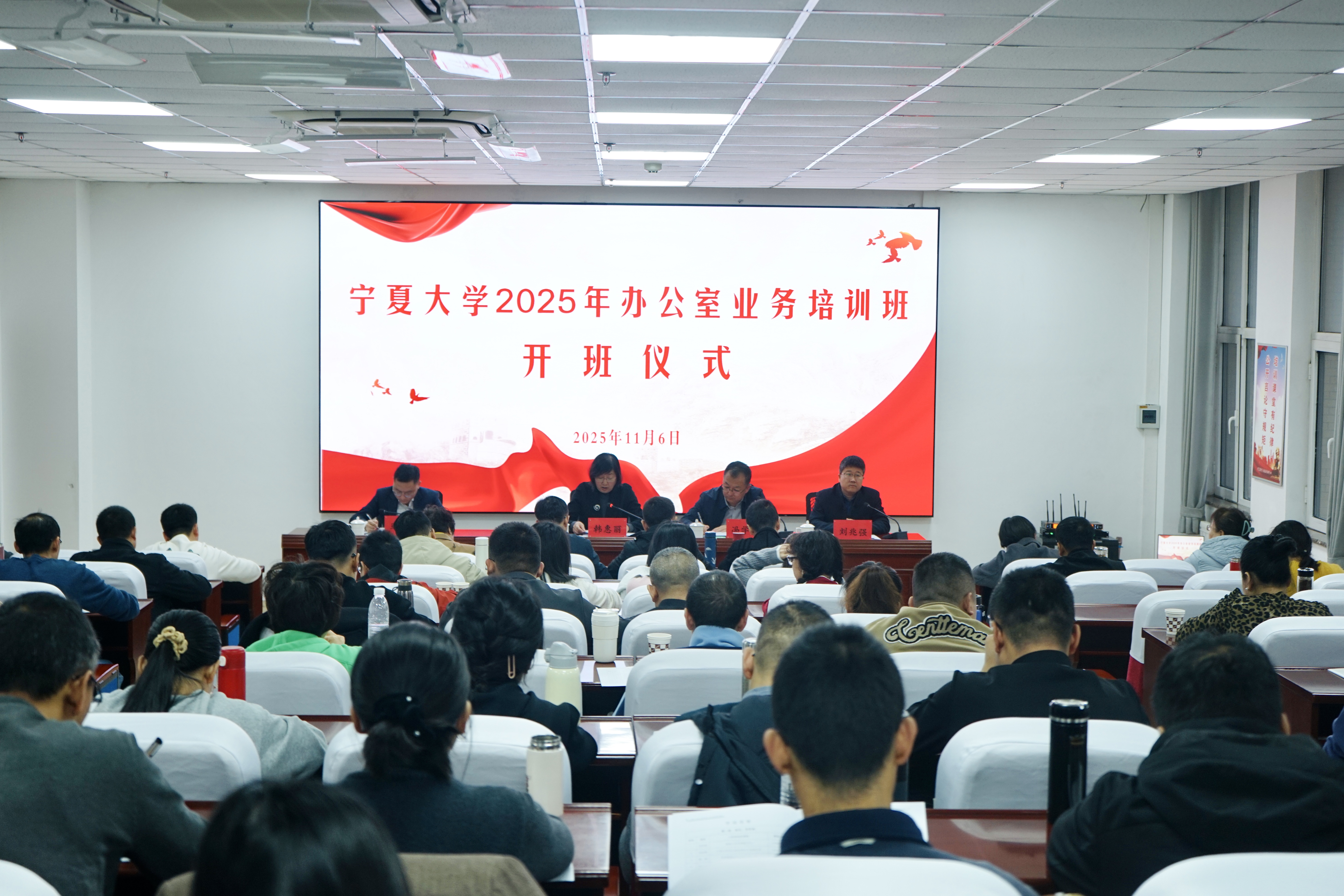 【bat365中文官方网站新闻中心讯 办公室】为深入学习贯彻党的二十届四中全会精神及习近平总书记关于办公厅工作的重要讲话和指示批示精神,进一步提升学校各单位办公室工作人员的业务能力与综合素质,全面增强“三服务”工作质效,11月6日至8日,学校第四期办公室业务培训班在宁夏闽宁乡村振兴培训中心(滨河校区)举办。来自学校党群行政、教辅直属单位、学部及书院的60余名办公室工作人员参加培训。校党委副书记韩惠丽出席开班式并作动员讲话。她强调,全体学员要始终坚持“以学促干、学以致用”原则,深化理论学习,筑牢思想根基,通过系统研习习近平新时代中国特色社会主义思想,不断提升政治素养与思想境界;强化实践导向,提升履职能力,聚焦发现问题、分析问题、解决问题能力的培养,推动理论学习成果转化为工作实效;注重服务实效,彰显责任担当,切实提高“服务发展、服务决策、服务落实”工作水平,以更高质量的工作成效为学校建设特色鲜明的高水平大学贡献力...