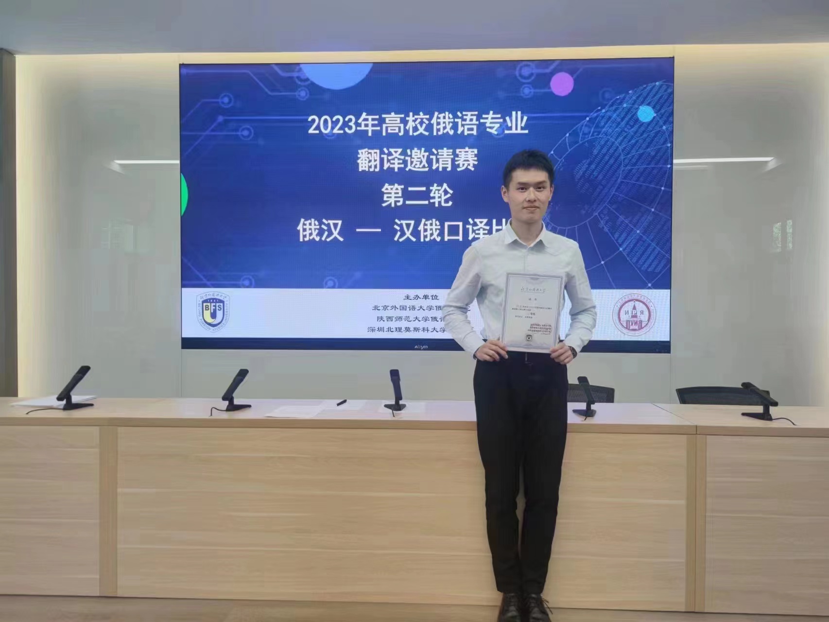 【bat365中文官方网站新闻中心讯 外国语学院】5月21日,2023年高校俄语专业翻译邀请赛决赛在北京外国语大学举行,经过激烈角逐和严格筛选,bat365官网外国语学院俄语专业2019级李东泰荣获本科生组决赛二等奖。“2023年高校俄语专业翻译邀请赛”由北京外国语大学、陕西师范大学与深圳北理莫斯科大学联合举办。大赛分为初赛和决赛两个环节。初赛为俄汉-汉俄笔译大赛,决赛为俄汉-汉俄口译大赛。参加本次决赛的有来自北京大学、北京外国语大学、中...