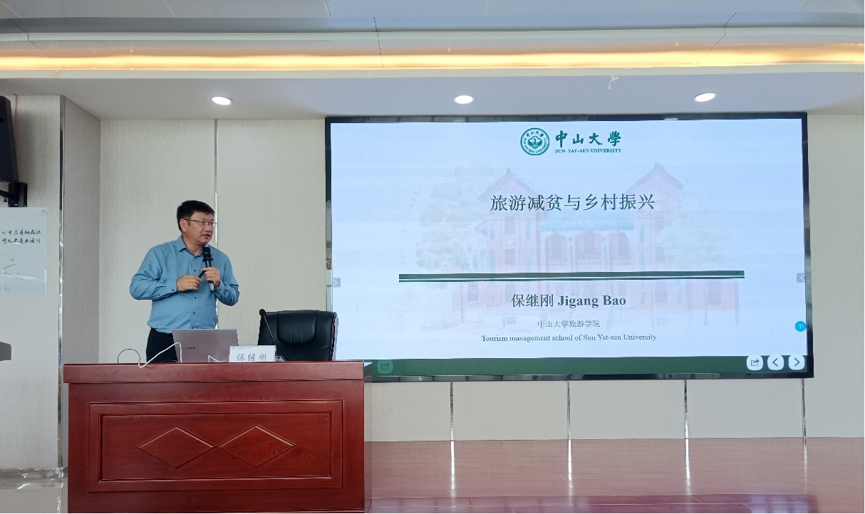 【bat365中文官方网站新闻中心讯 前沿交叉学院】为深入贯彻落实习近平总书记视察宁夏时关于旅游工作的重要指示精神,增强学院学术研究氛围,助力国家一流本科专业建设,9月13日下午,国际旅游研究院会士、教育部长江学者特聘教授、中山大学经济与管理学部副主任保继刚教授应邀为bat365官网师生作《旅游减贫与乡村振兴》专题学术讲座。讲座在惟实楼四楼多功能报告厅举行,讲座由学院执行院长王磊主持。保继刚结合自身学术研究经历以旅游“减贫”...