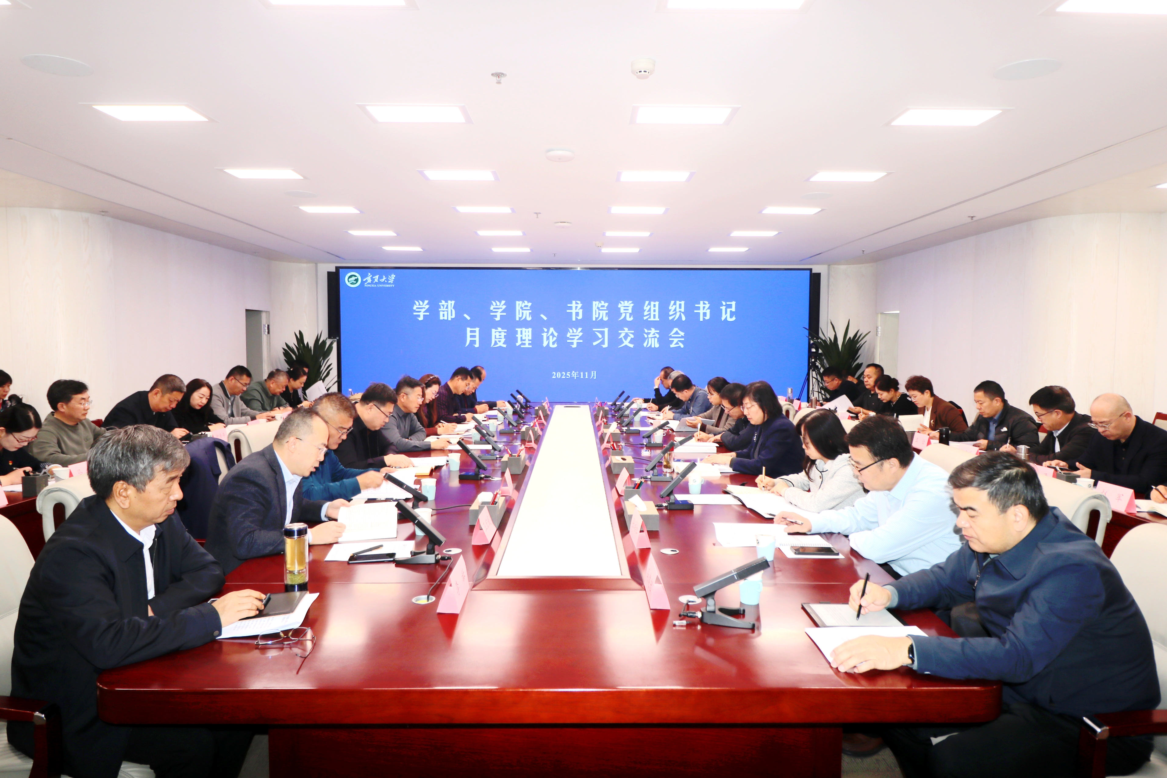 【bat365中文官方网站新闻中心讯 张景/文、图】11月5日,学校组织召开学部、学院、书院党组织书记月度理论学习交流会(十一月)。校党委书记王宏伟、校党委副书记韩惠丽参加学习会。会上,王宏武、孙建军、程胜利、张宁分别领学《习近平谈治国理政》第五卷《以教育之强夯实国家富强之基》篇目,中共中央印发的《中国共产党思想政治工作条例》,习近平总书记在听取宁夏回族自治区党委和政府工作汇报时的讲话精神和《中国共产党第二十届中央委员会第四次全体会议公报》等内容。武林波、李文华、吕海军、任磊结合自身工作实际作了交流分享。王宏伟强调,各级党组织负责人要熟练掌握党的创新理论,将习近平总书记关于教育的重要论述作为必修课、基本功,深刻领会党中央决策部署,以理论清醒确保政治坚定、行动有力,切实把党的理论主张转化为凝聚师生、推动工作的强大力量。要深化“一融双高”建设,强化班子建设与纪律规矩意识,把资源向教学科研一线倾斜,激发基层组织活...