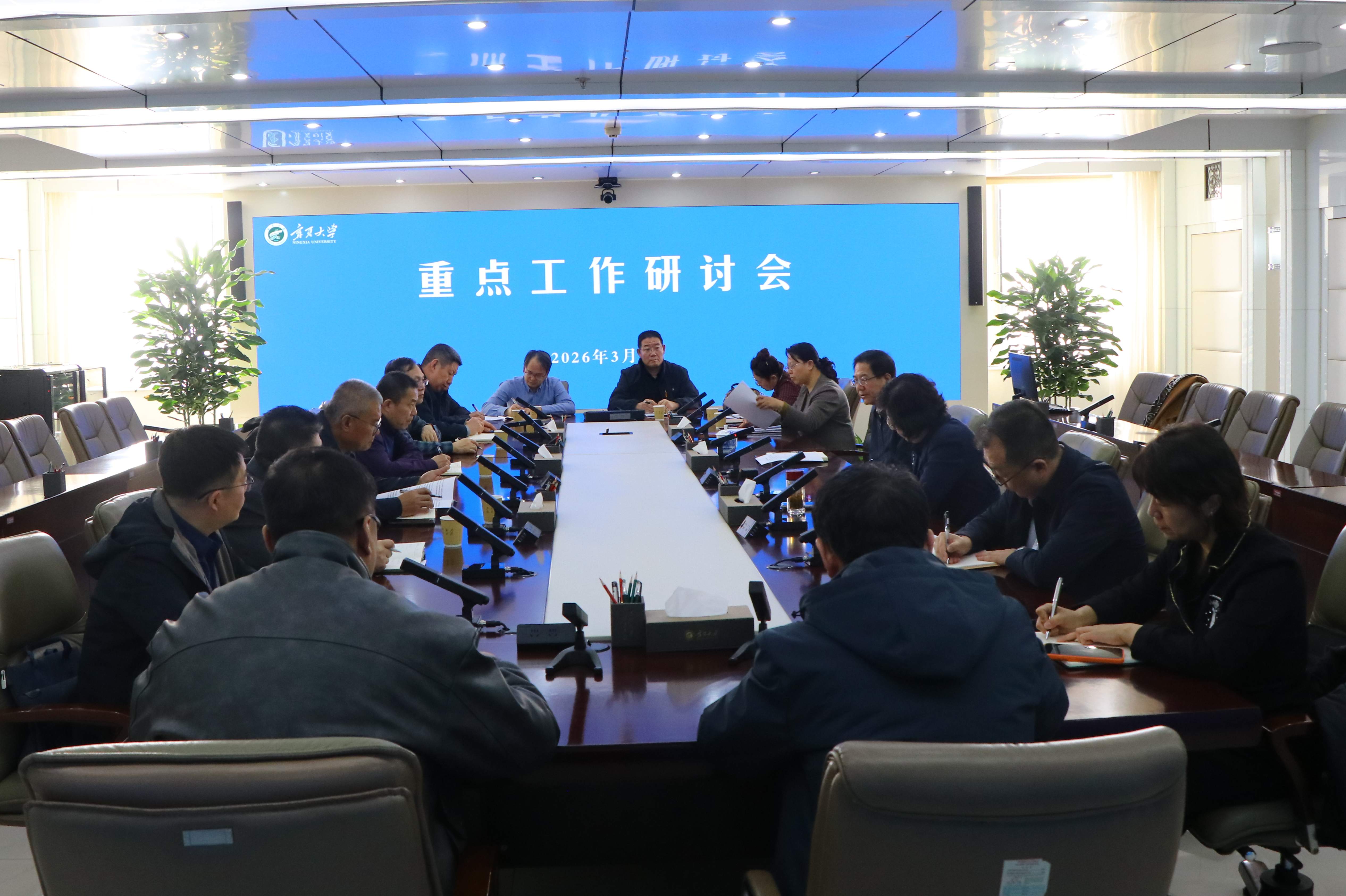 【bat365中文官方网站新闻中心讯 姬晓姗/文、图】2026年是“十五五”开局之年,为进一步明确今年重点工作任务,统一思想、凝聚共识,3月3日至6日,校党委书记王宏伟在德勤楼十一楼会议室分别主持召开8场重点工作会商会,与校领导韩惠丽、张桓、黄河、马元、赵晓佳、冯秀芳、杨文法、车进及其分管(联系)部门(单位)主要负责人面对面会商,围绕学校2026年工作要点、树立和践行正确政绩观学习教育、校园安全稳定、就业工作、“十五五”规划编制等核心议题进行研讨,确保新学期各项工作有序开展。会议强调,安全稳定是学校工作的重中之重,必须常抓不懈。当前正值全国两会召开和春季开学,各部门各单位一把手要亲自带队,深入排查安全隐患,紧盯交通安全、消防安全、食品安全、网络安全等关键领域,严格落实自治区相关工作部署要求,加强工作研判,确保校园安全稳定。会议要求,学校2026年工作要点紧密围绕国家战略布局、自治区党委工作部署和学校实际情况,包括13个方...