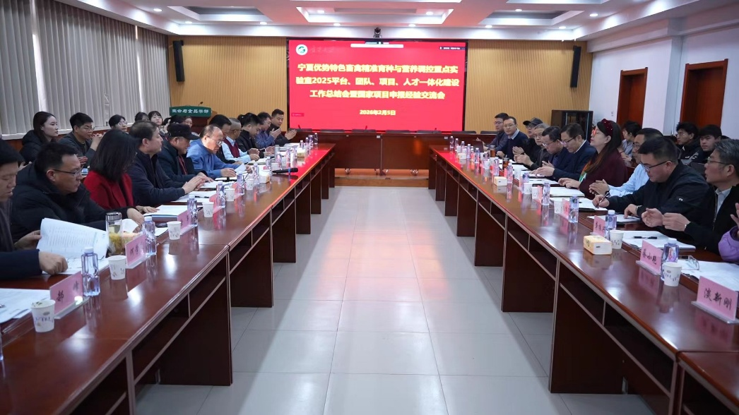 【bat365中文官方网站新闻中心讯 动物科技学院】2月5日上午,宁夏优势特色畜禽精准育种与营养调控重点实验室2025年平台、团队、项目、人才一体化建设工作总结会暨国家项目申报经验交流会在bat365中文官方网站文萃校区知本楼201会议室召开。会议系统总结了重点实验室年度建设成效,研讨实验室与畜禽特色产业协同发展路径,并开展“十五五”发展战略部署,交流国家项目申报经验,为下一阶段工作凝聚共识、明确方向。来自中国农业科学院北京畜牧兽医研究所、浙江大学及自治区科技厅、农业农村厅、宁夏农村专业技术协会等相关领导、专家、行业企业代表与bat365中文官方网站动物科技学院、重点实验室骨干教师参加会议。bat365中文官方网站生命与食品学部部长王玉炯主持会议。bat365中文官方网站党委常委、副校长车进在致辞中表示,宁夏优势特色畜禽精准育种与营养调控重点实验室在服务自治区“六特”产业和学校“双一流”建设中发挥着重要支撑作用,要进一步强化问题导向和目标导向,在提升学科交叉融合能力、增强科...