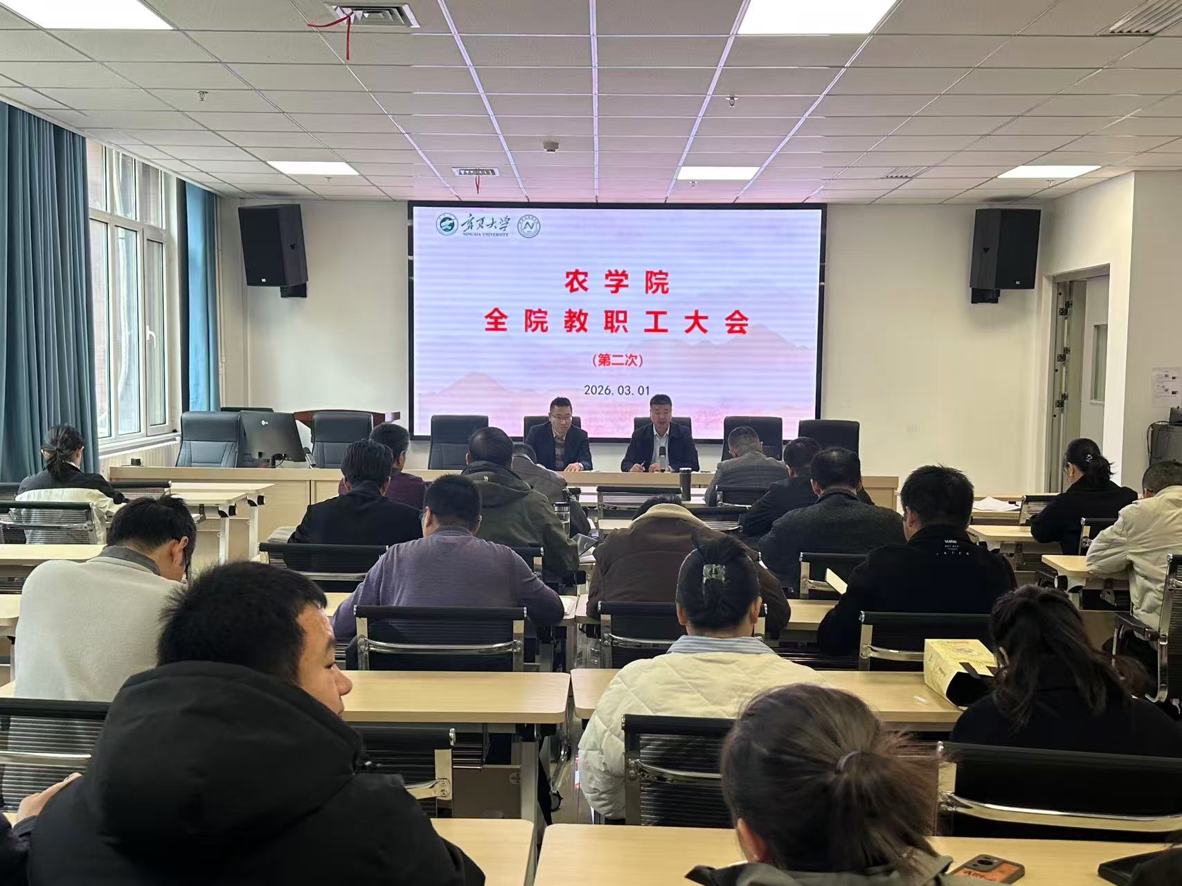 【bat365中文官方网站新闻中心讯 农学院】为深入学习贯彻学校2026年工作部署会议精神,统一思想、明确方向、凝聚力量,3月1日,农学院召开新学期全院大会。学院班子成员、全体教职工参会,会议由院长李培富主持。会上,学院党总支书记苏宇静组织学习了习近平总书记在省部级主要领导干部学习贯彻党的二十届四中全会精神专题研讨班开班式上的重要讲话精神,深入解读《关于在全党开展树立和践行正确政绩观学习教育的通知》核心要义,传达自治...