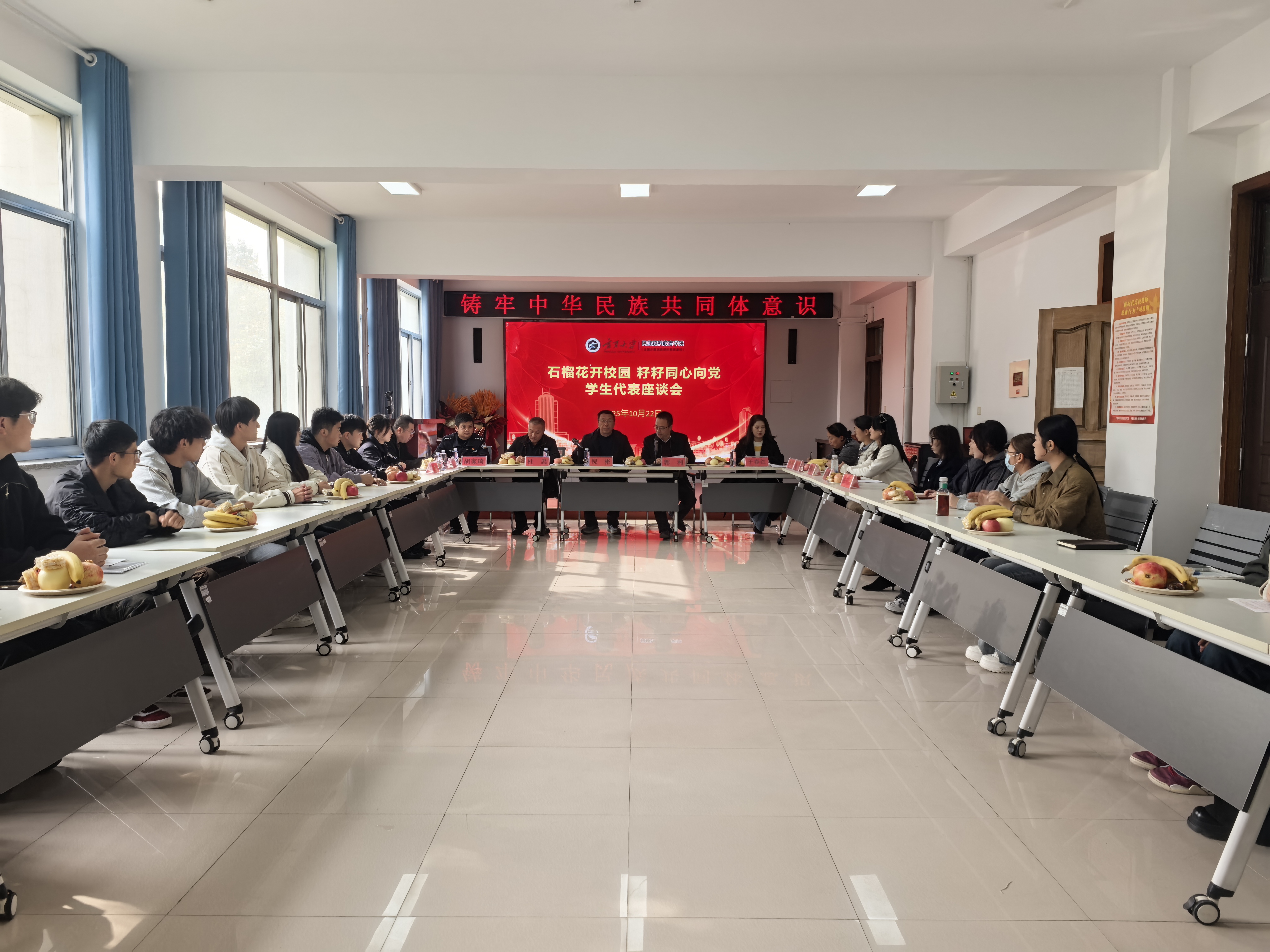 【bat365中文官方网站新闻中心讯 民族预科教育学院】为深入铸牢中华民族共同体意识,搭建师生与多方交流平台,民族预科教育学院于10月22日召开 “石榴花开校园 籽籽同心向党” 学生代表座谈会。学院党总支书记倪彬,银川市金凤区公安分局政保大队队长杜忠、政保支队于春红、长城路派出所副所长胡家琦及学院教师代表、全体辅导员和学生代表共同参会,会议由党总支副书记郭利主持。学生代表们结合自身学习生活与成长感悟,围绕“民族团结”“集体融入”“学业规划”等主题进行分享。他们讲述了在校园中与不同民族同学互帮互助的温暖故事,也提出了学习生活中遇到的困惑与需求,充分展现了新时代预科学生积极向上的精神风貌与对民族团结的深刻认知。优秀班主任代表谢静雯老师从教育教学与学生培养角度出发,希望同学们尽快适应新的环境,迅速地投入到新的学习生活中去,结合教学案例,鼓励学生们以包容开放的心态拥抱多元文化,在互助学习中共同进步,为铸牢中华民族共同...